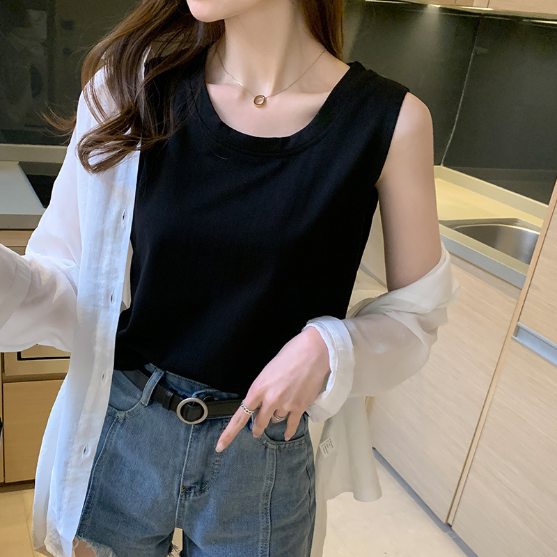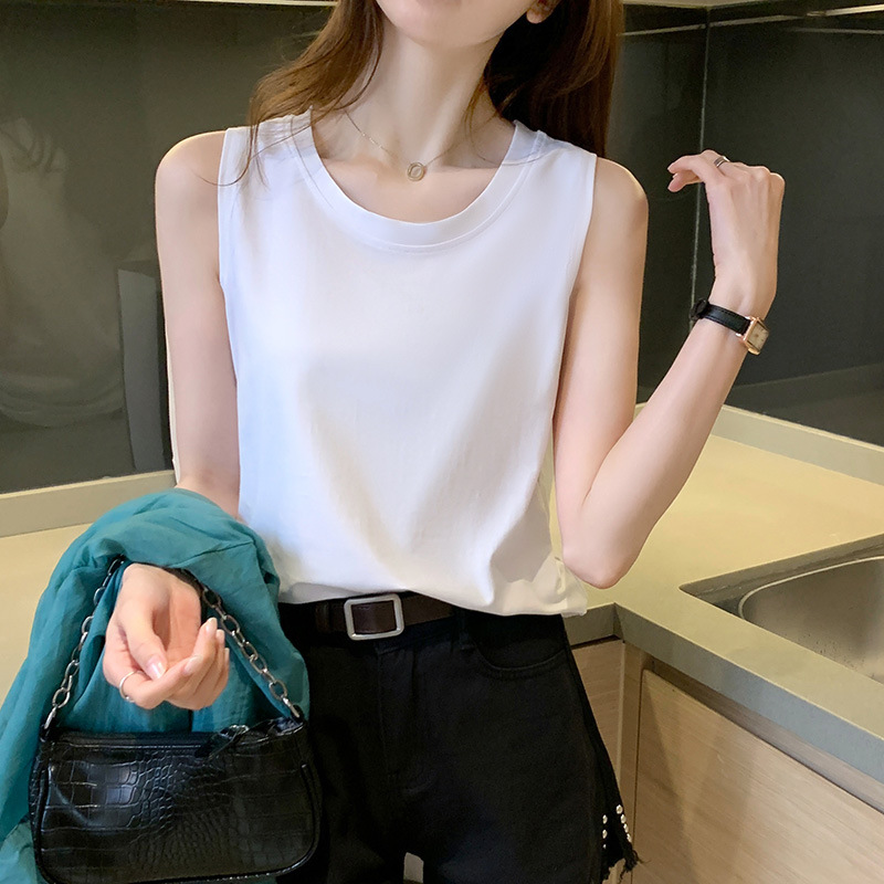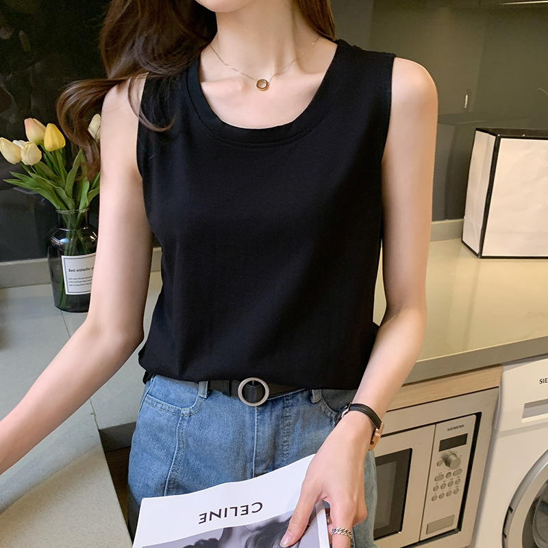 纯棉宽松吊带背心女装夏季新款内搭外穿圆领纯色印花无袖上衣