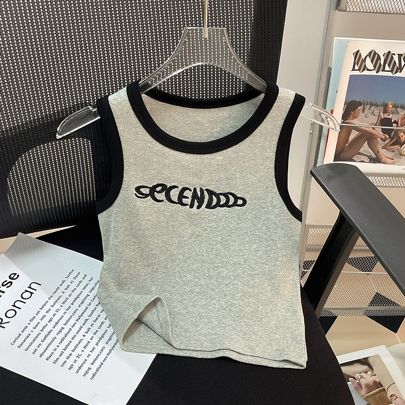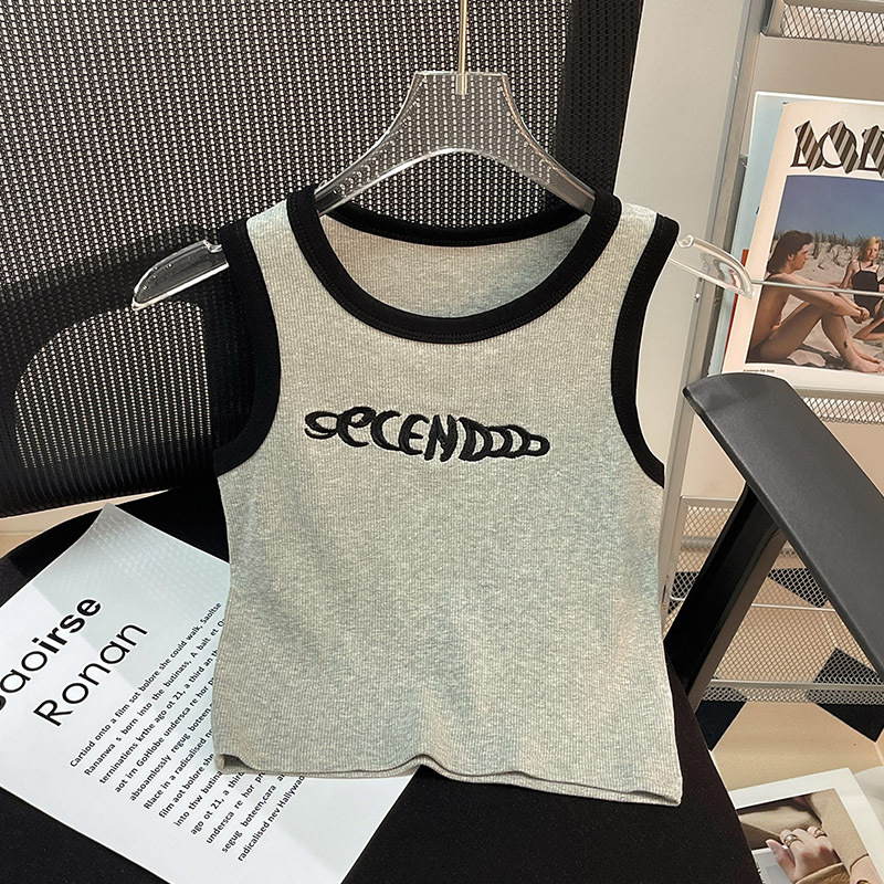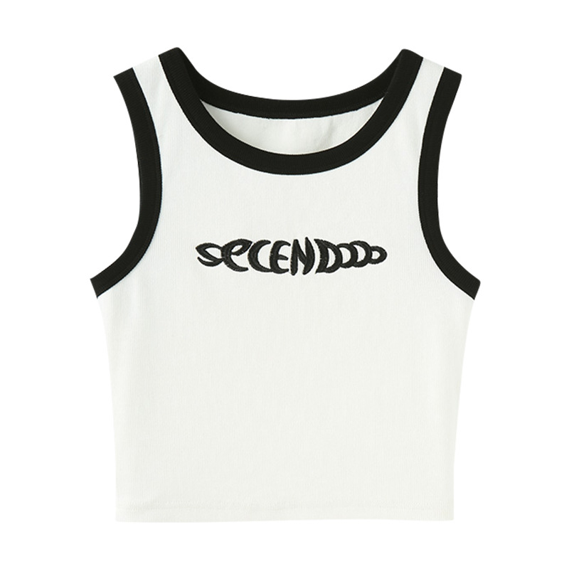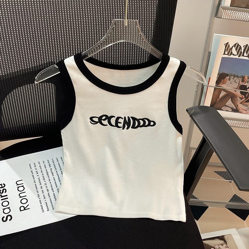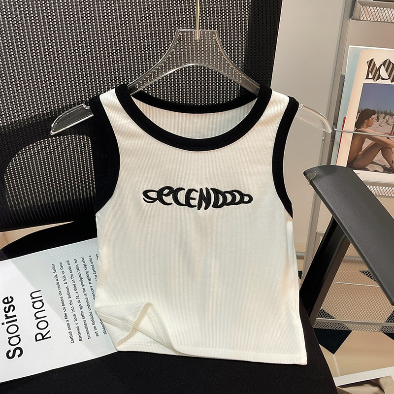 纯棉撞色吊带背心女内搭外穿夏季网红辣妹风高腰短款运动无袖上衣