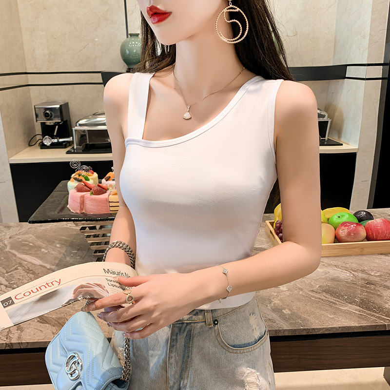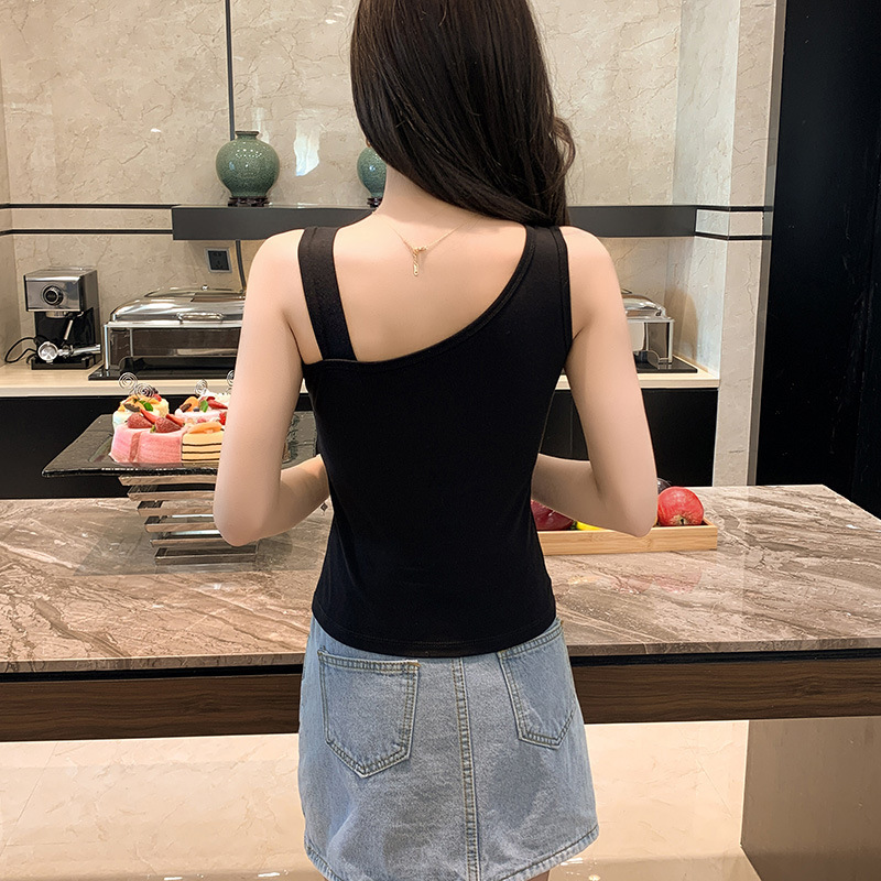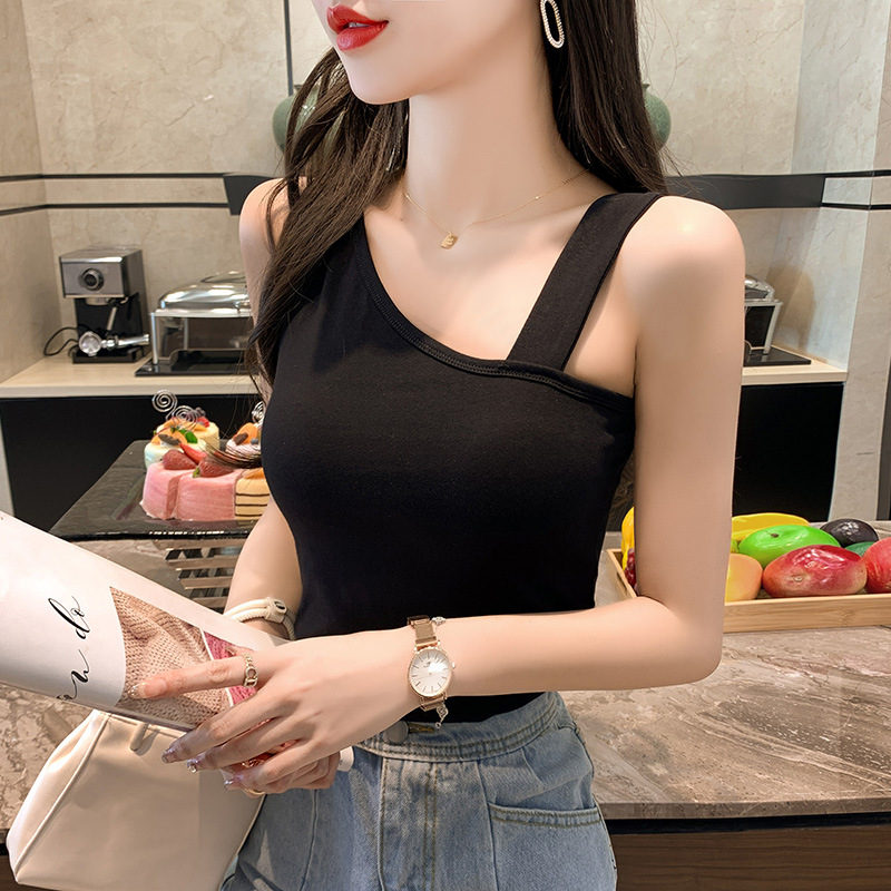 纯棉吊带遮副乳背心女内搭外穿春夏季设计感小众斜肩无袖t恤打底