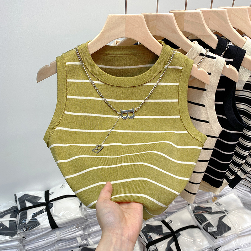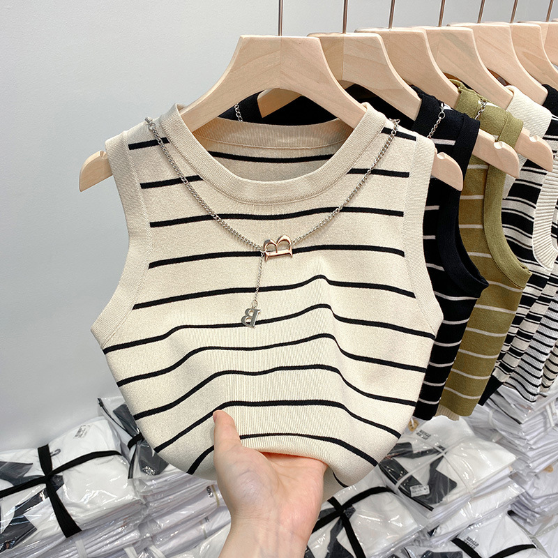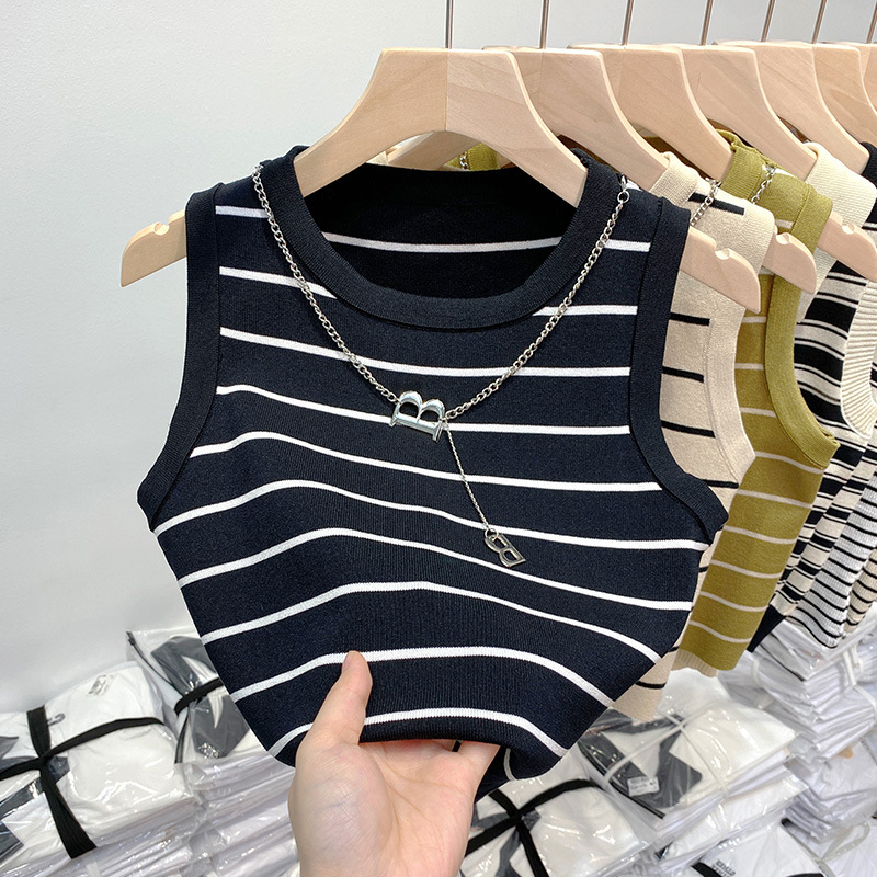 法式背心女内搭外穿打底新款吊带条纹针织无袖辣妹上衣夏季潮