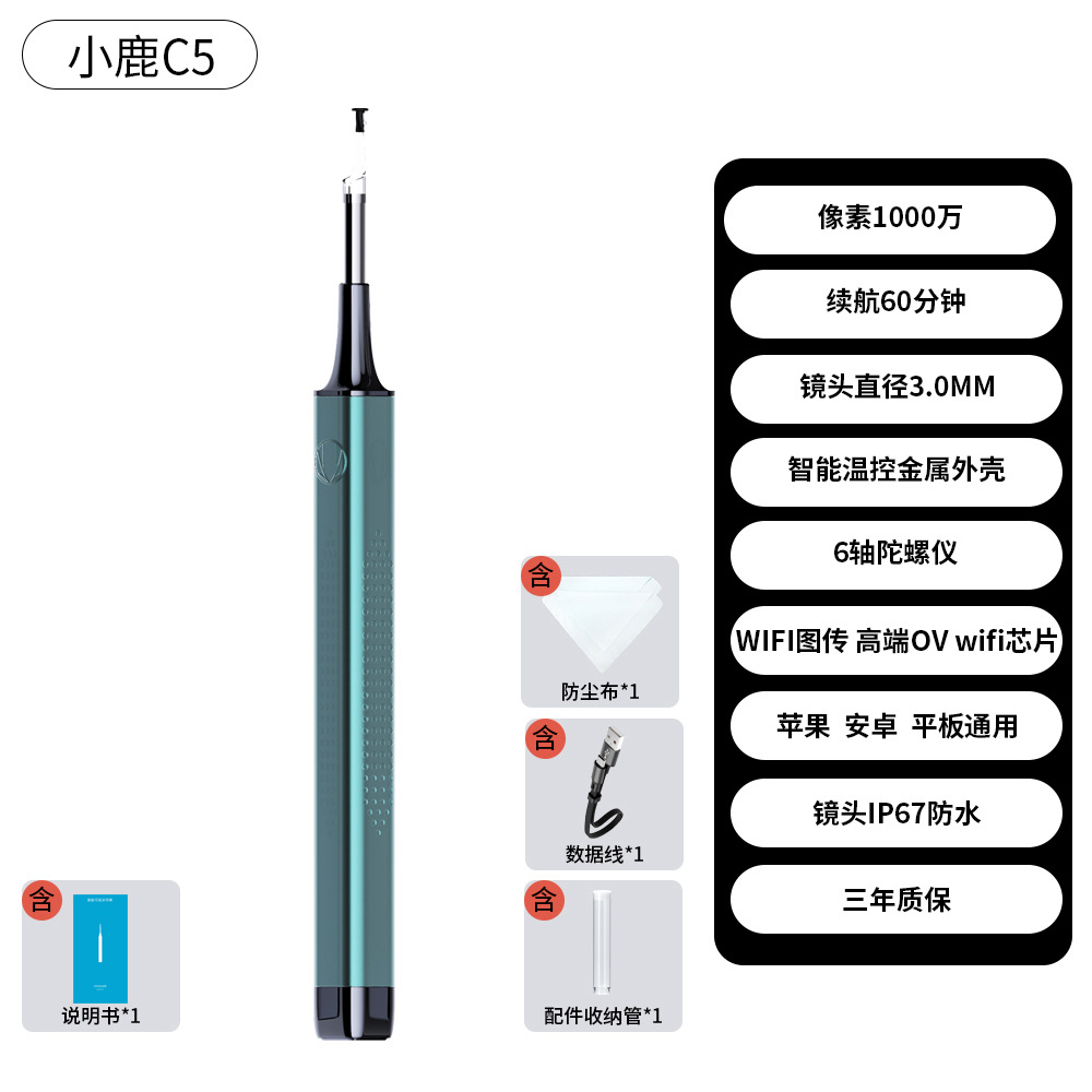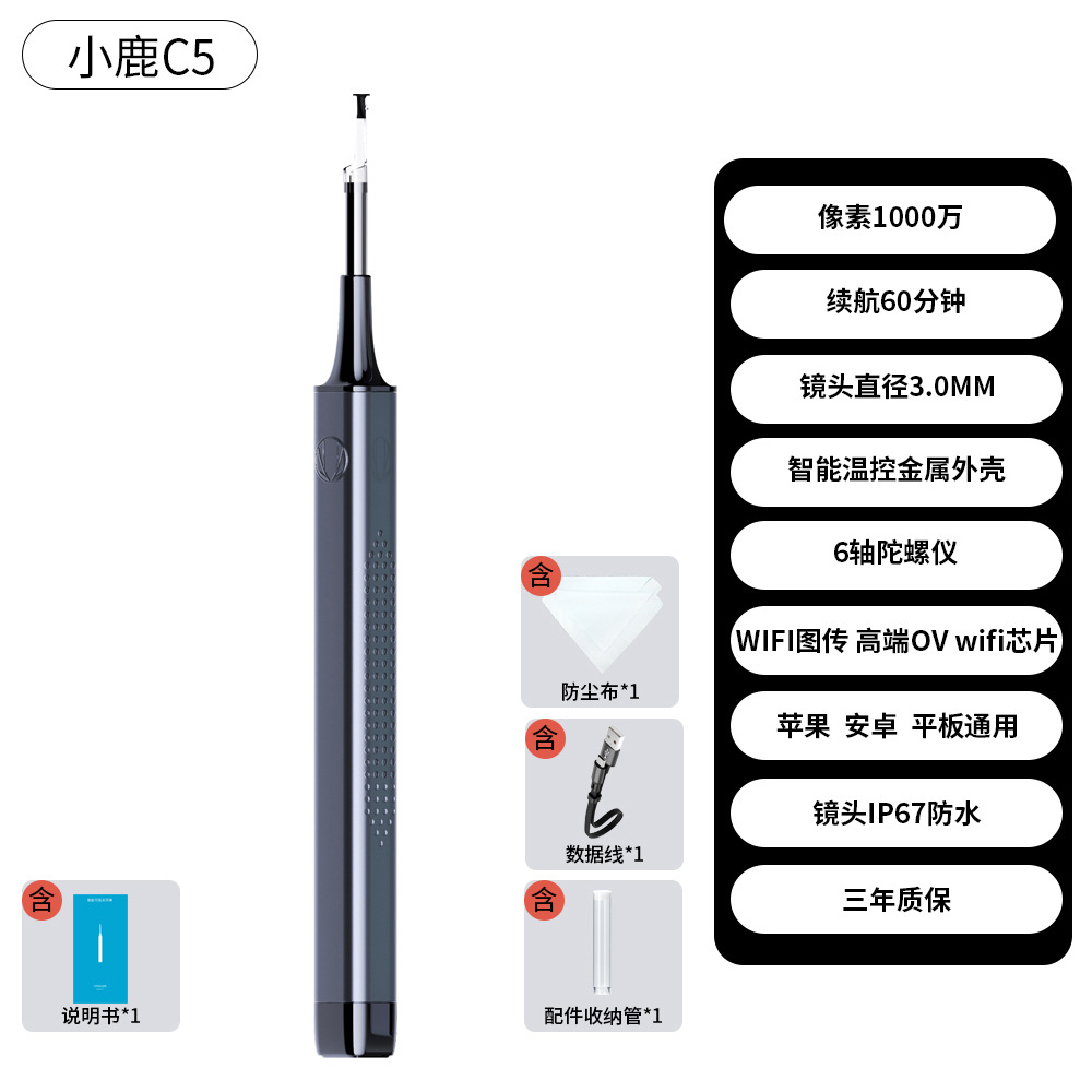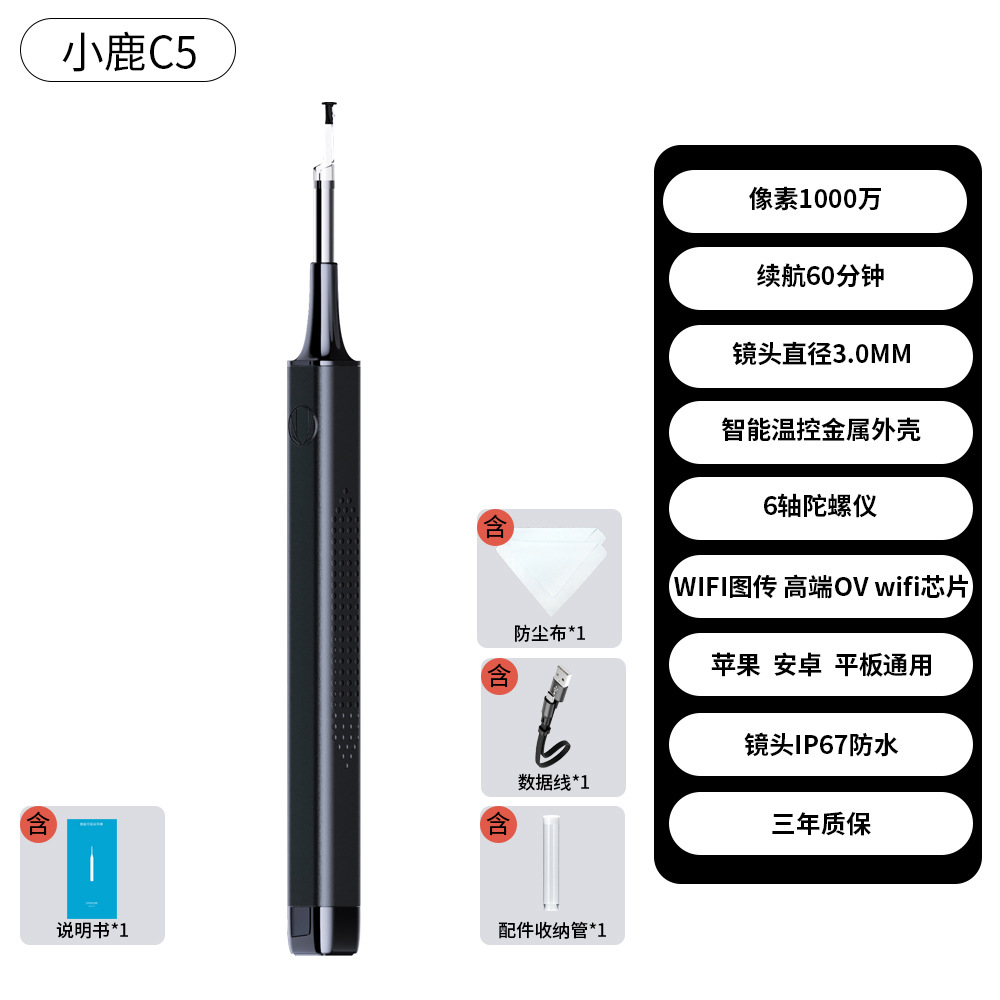 小鹿正品C5可视耳勺宝宝家用高清采耳棒5040P可视发光挖耳勺神器