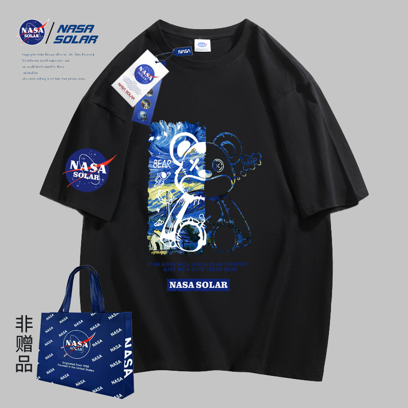 NASA联名新款可爱线条小熊男女同款短袖情侣T恤