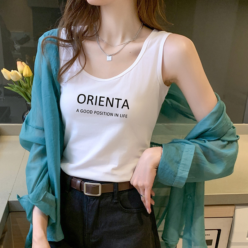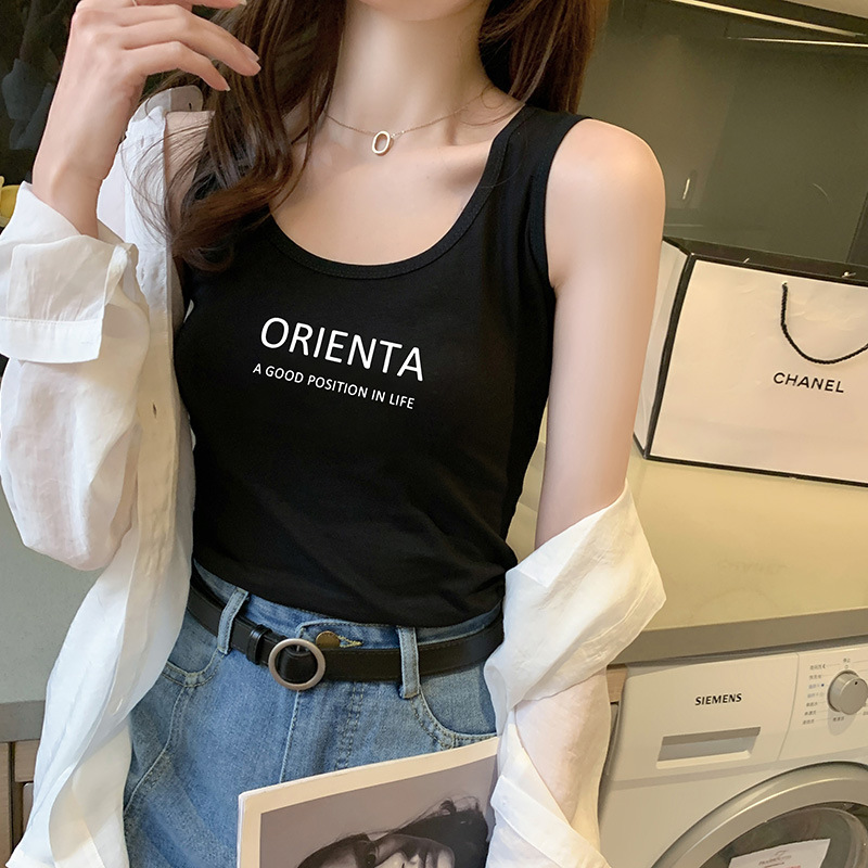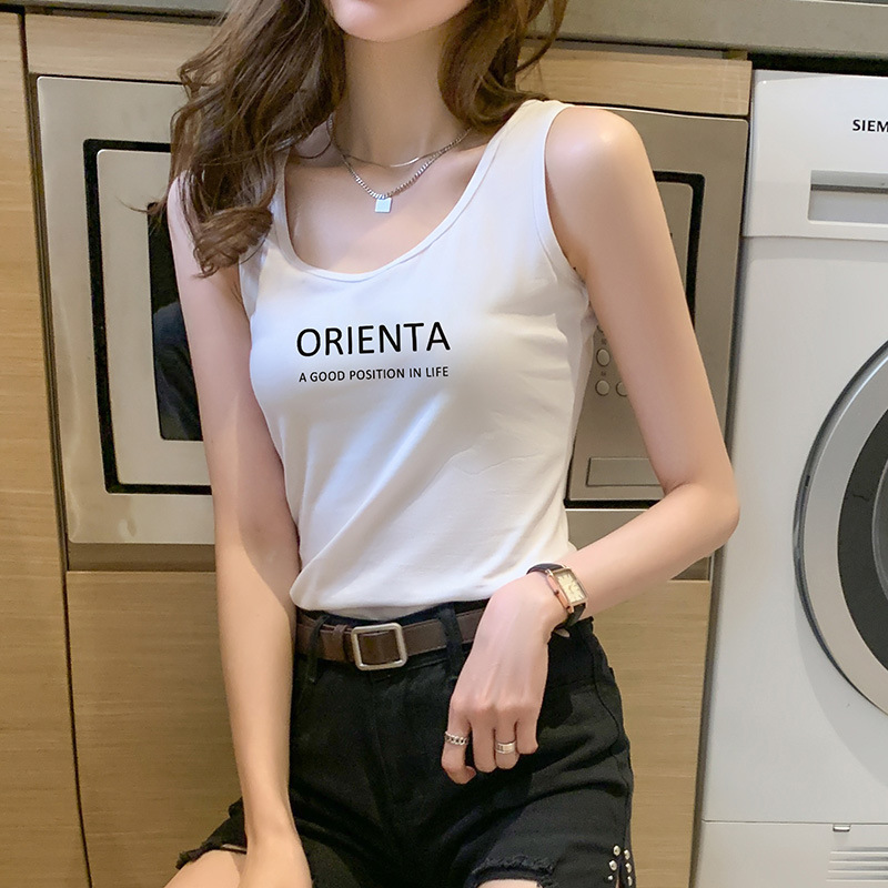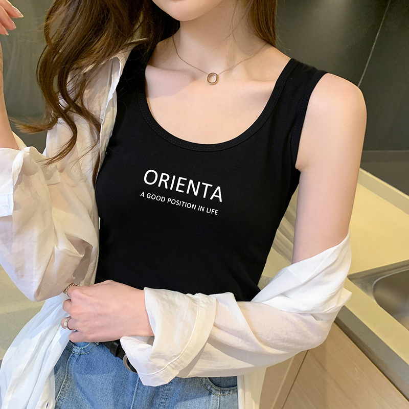 纯棉吊带背心女装夏季内搭外穿字母印花圆领修身无袖打底衫上衣服