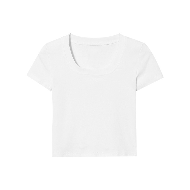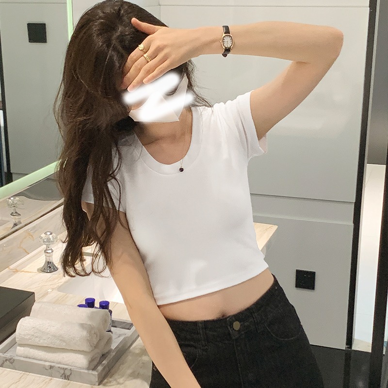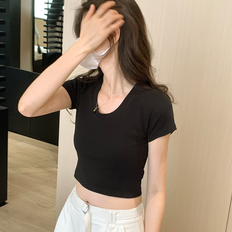 正肩短袖短款T恤女新款夏修身辣妹露脐高腰显高显瘦上衣体恤