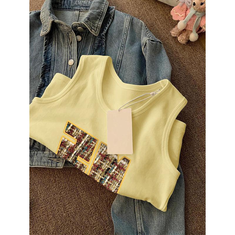 美式嫩黄色宽肩带无袖吊带背心女夏季新款辣妹外穿短款上衣潮