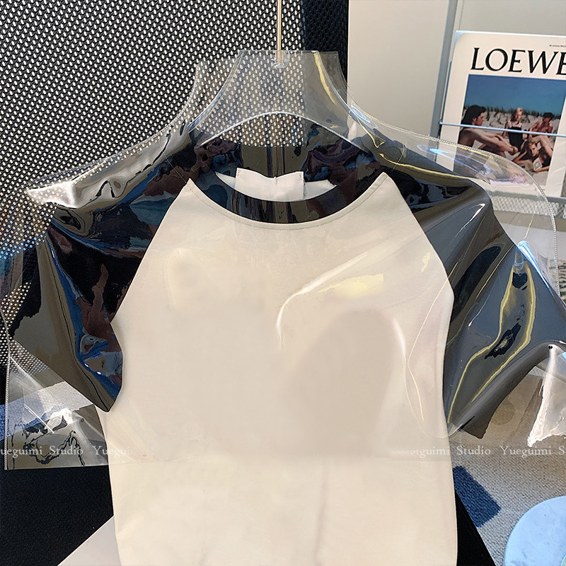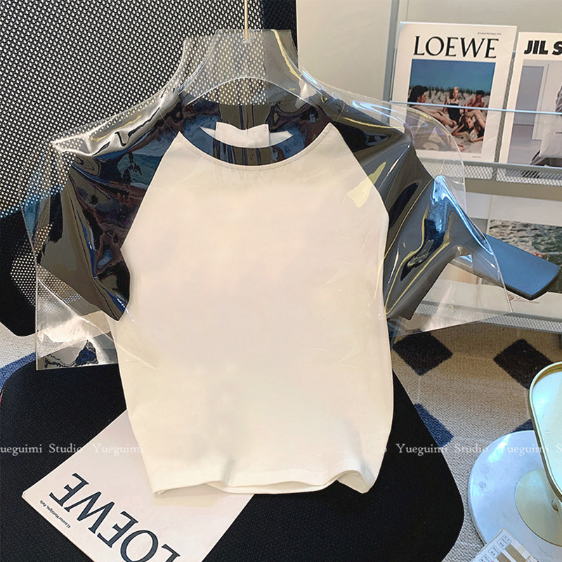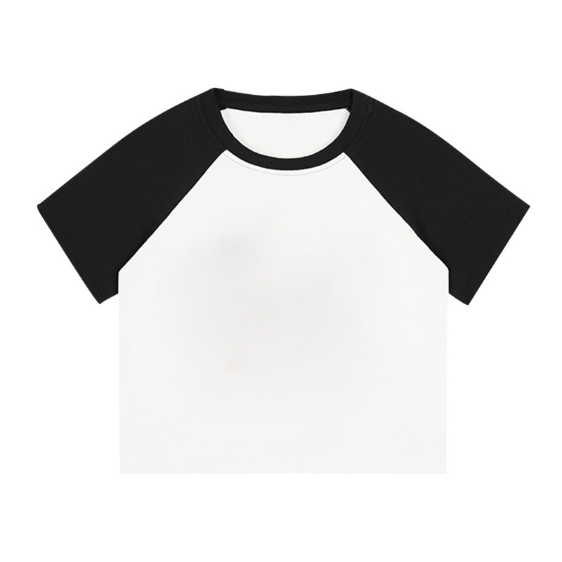 欧货纯棉短袖t恤女夏季拼色小众设计感圆领修身显瘦上衣洋气遮肉