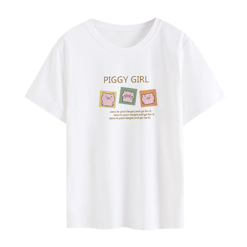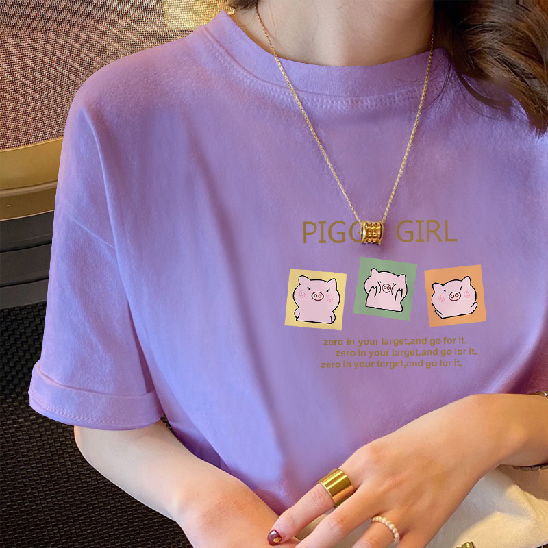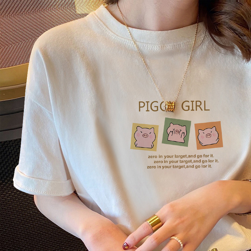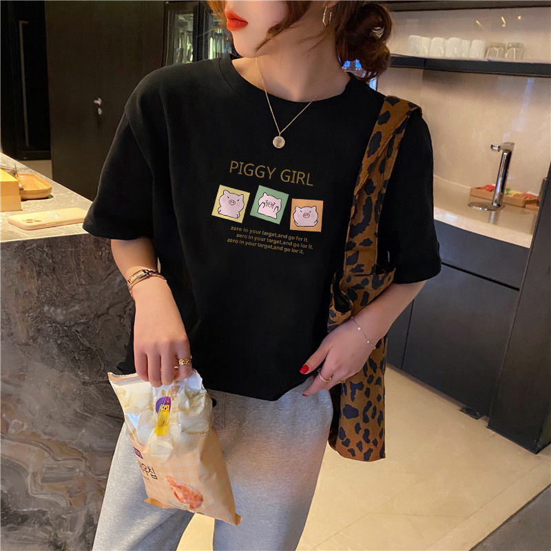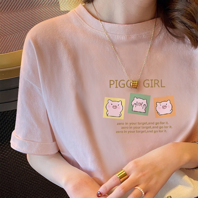夏季新品韩版圆领宽松百搭气质鸭子洋气印花短袖T恤女小清新上衣