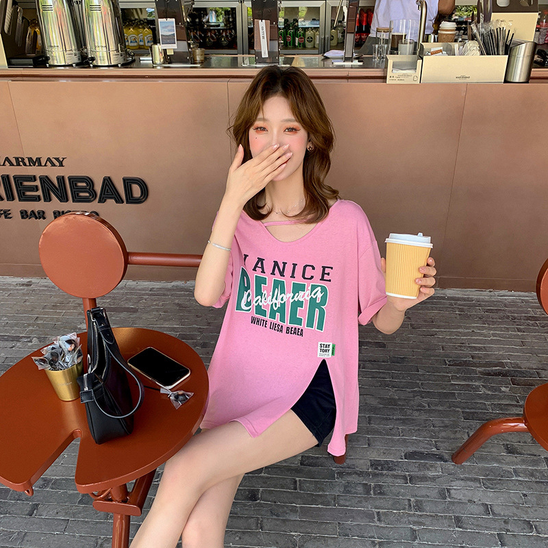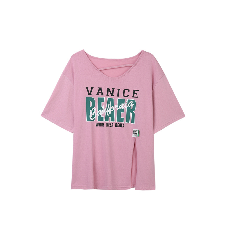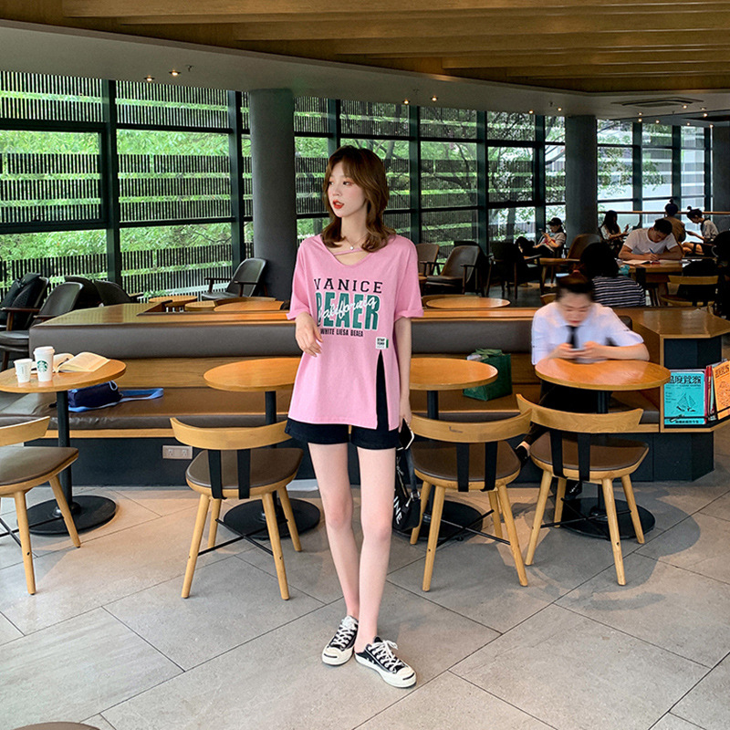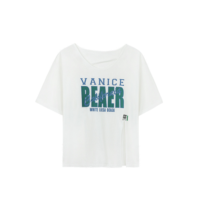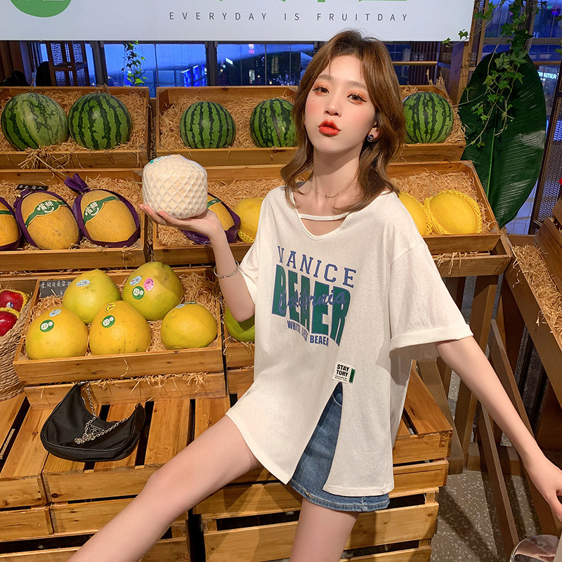 设计感小众开叉短袖t恤女夏季新款宽松韩版宽松半袖纯棉上衣
