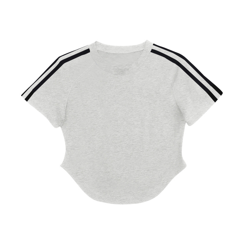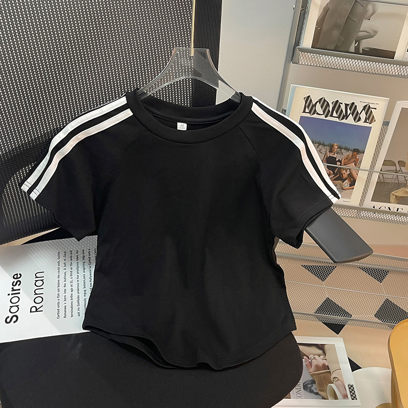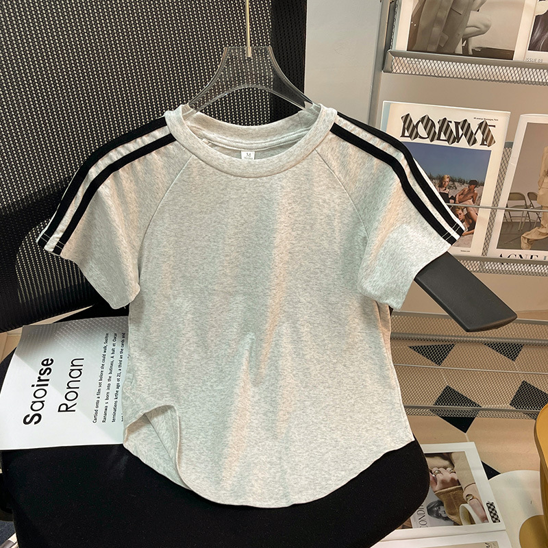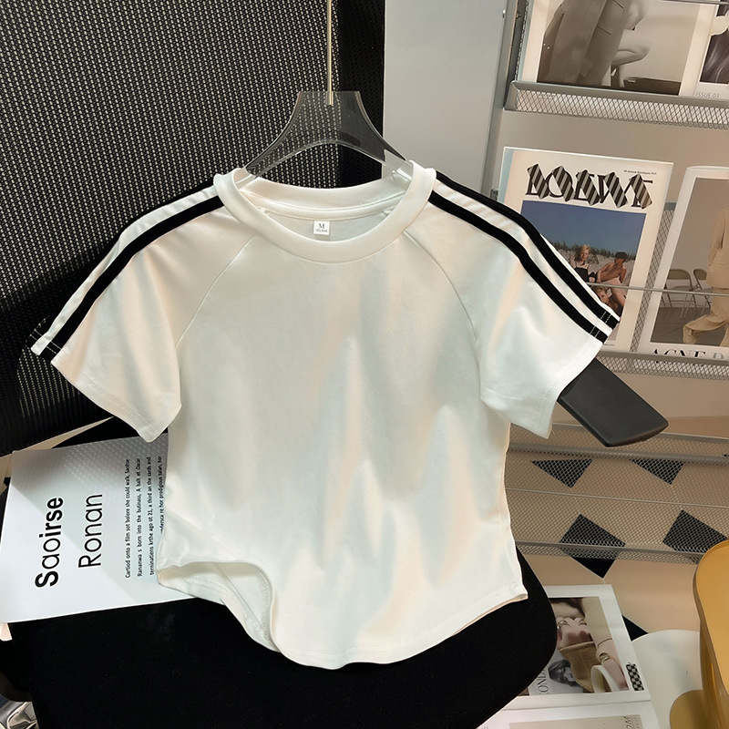 插肩短袖纯棉t恤女夏季新款设计感小众短款露脐拼接辣妹上衣