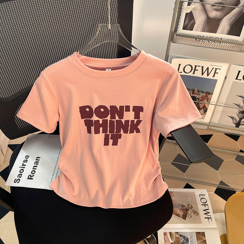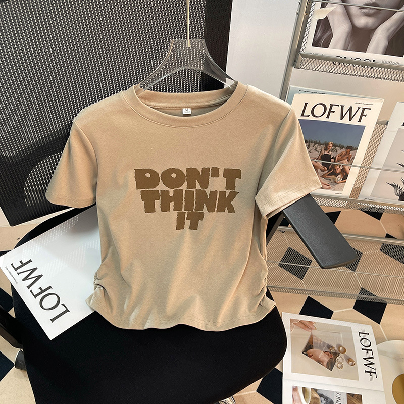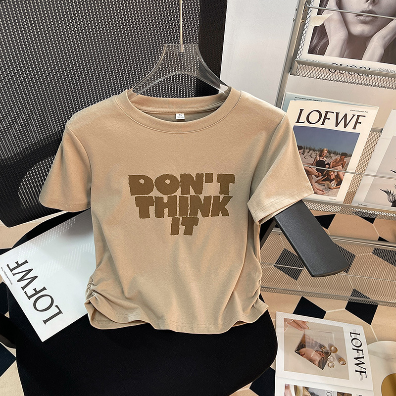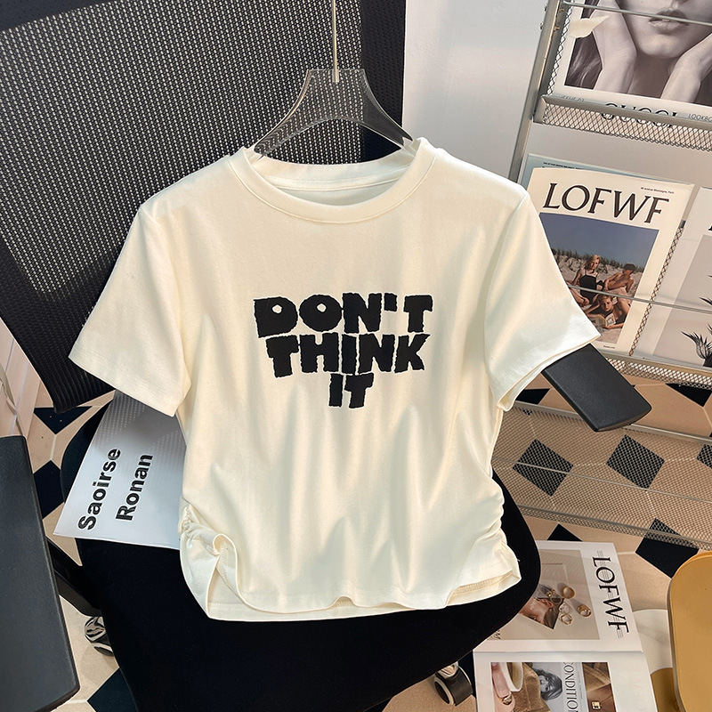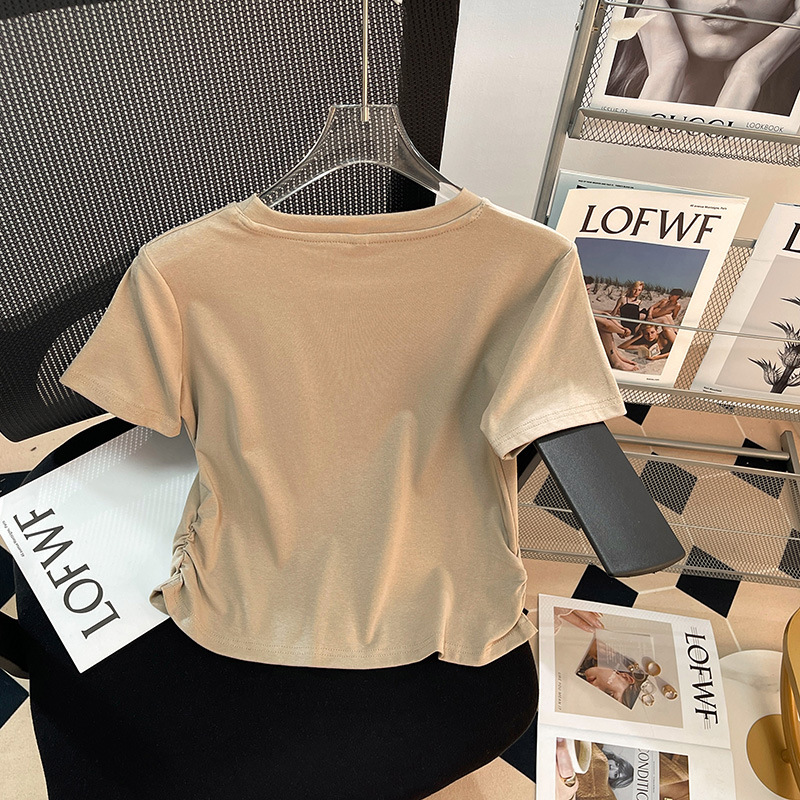 港风复古T恤女纯棉短袖chic夏季新款收腰短款显瘦设计感体桖上衣
