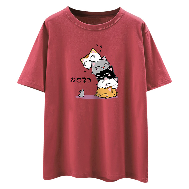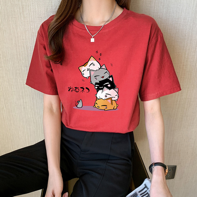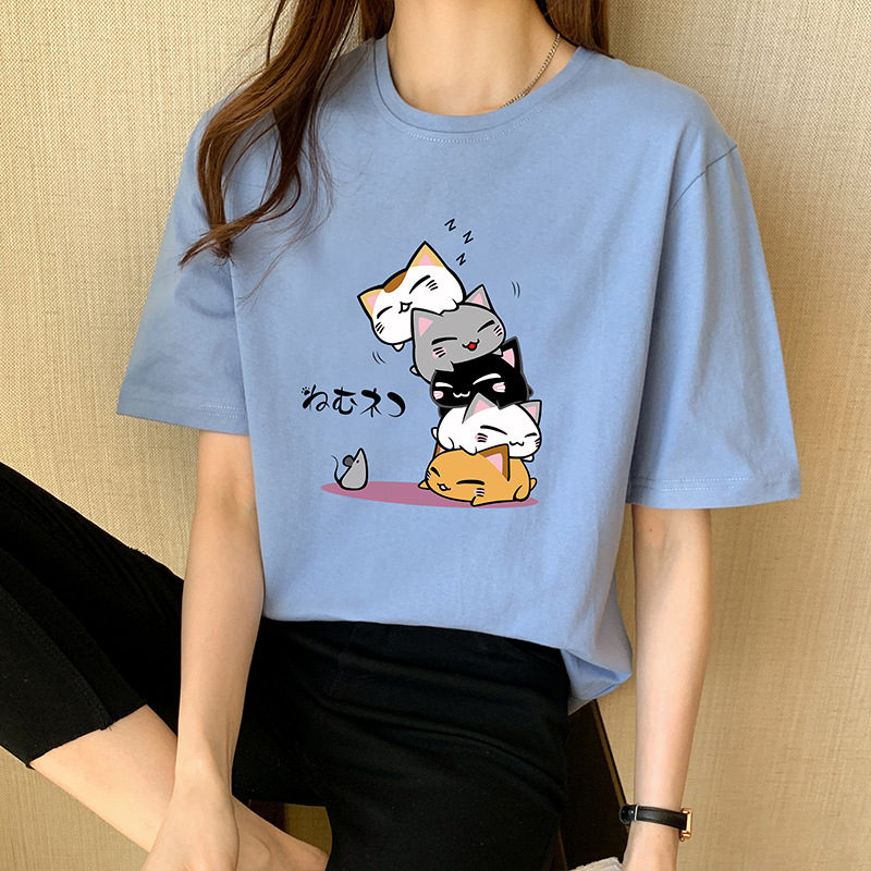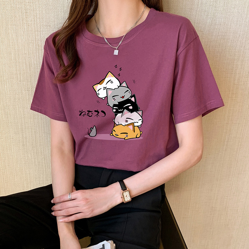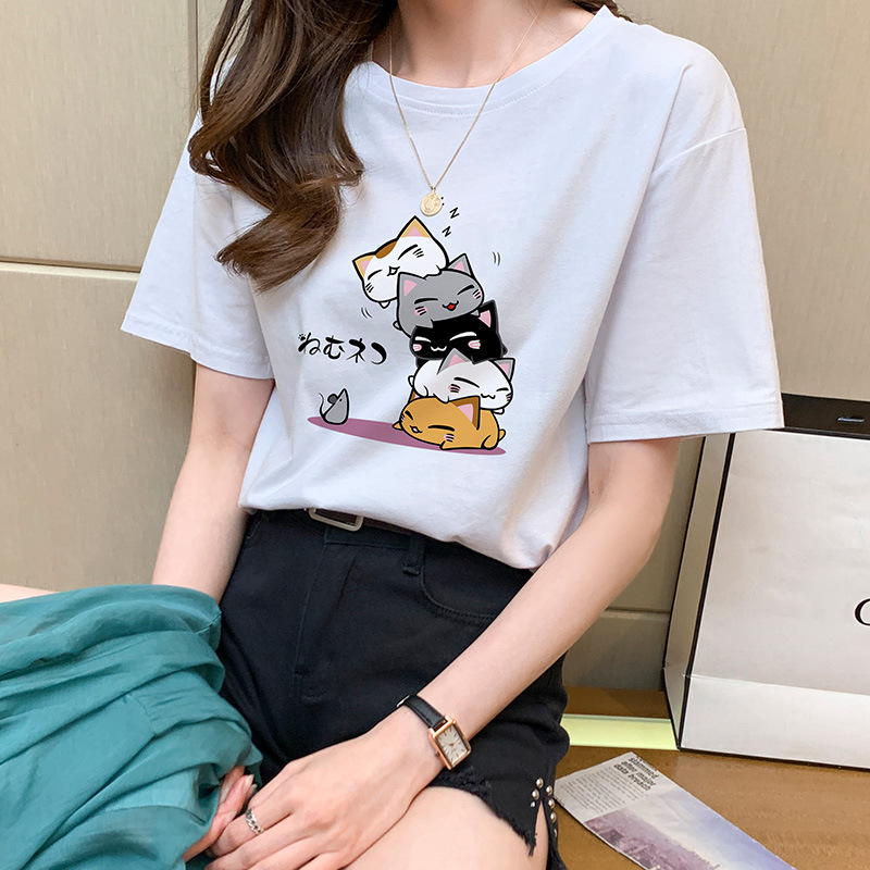 纯棉原宿风短袖t恤女新款夏季宽松卡通印花半袖体恤衫上衣服