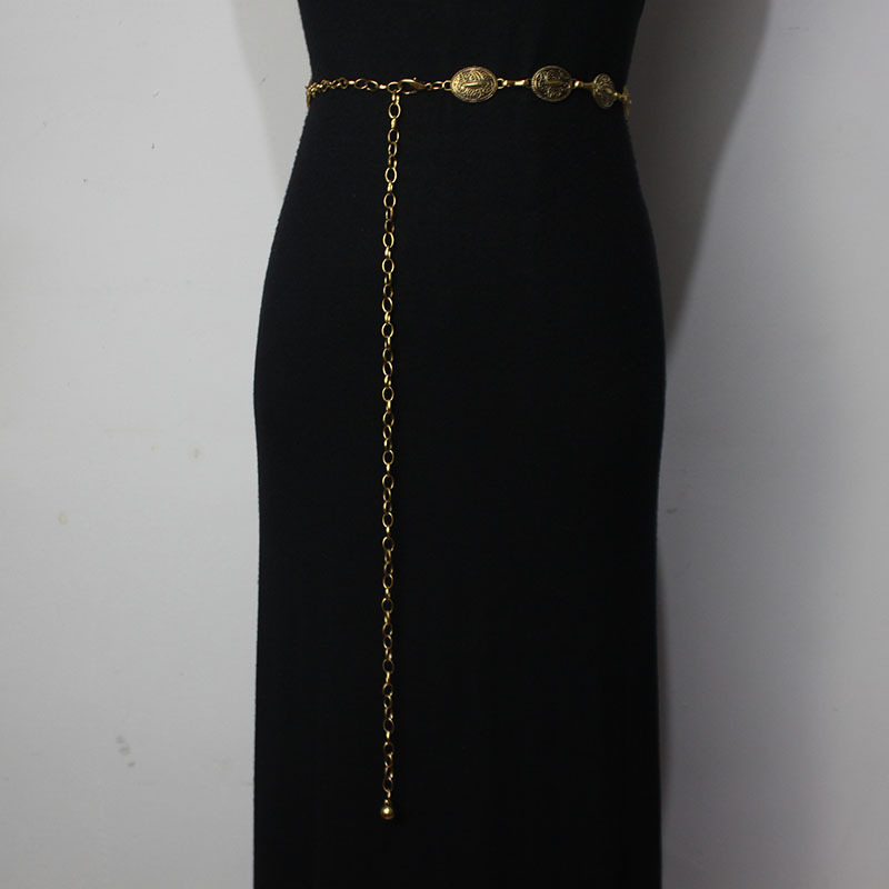 民族风椭圆雕花金属腰链女新款装饰连衣裙复古铜腰链条朋克腰带银