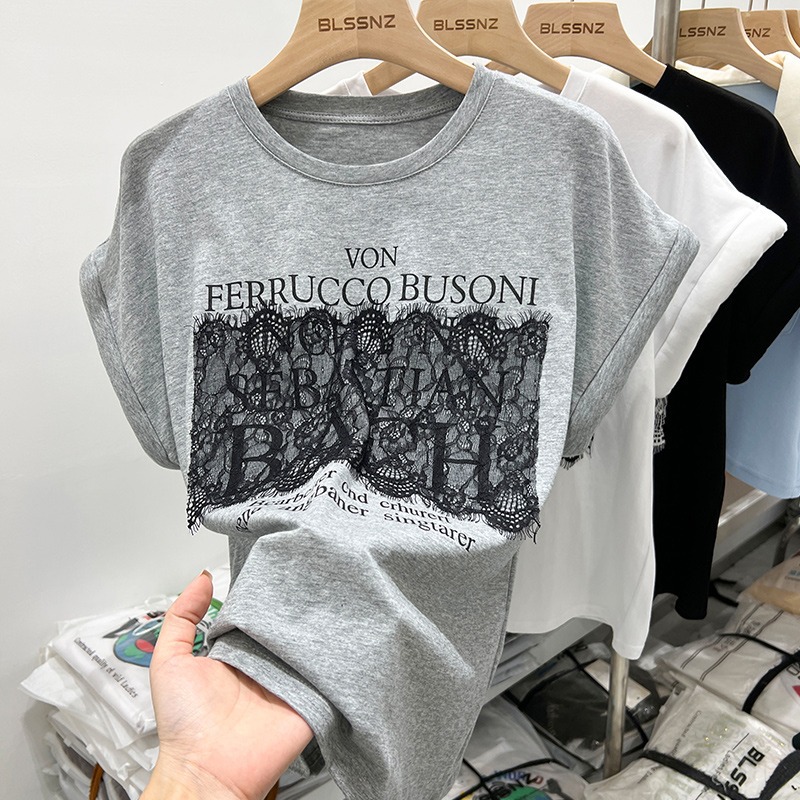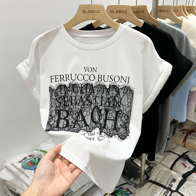 设计感小众短袖T恤女夏季新款别致纯棉宽松显瘦半袖蕾丝体桖上衣