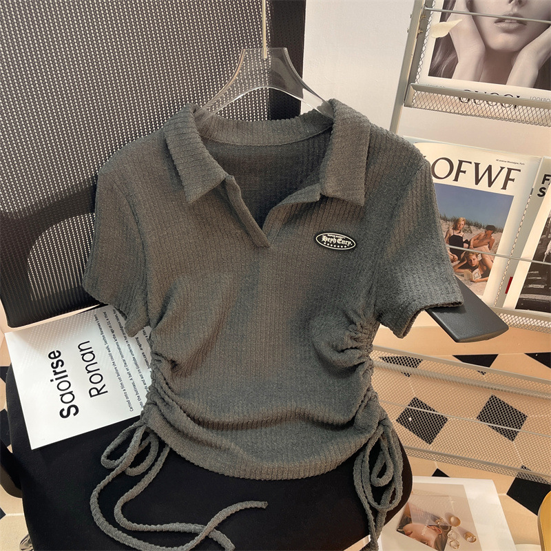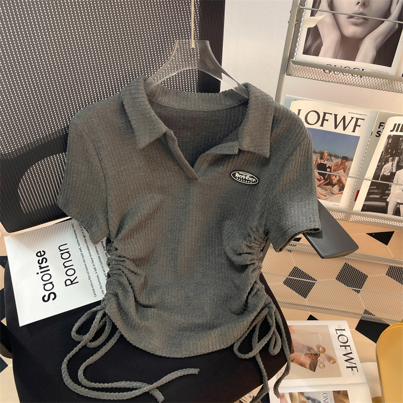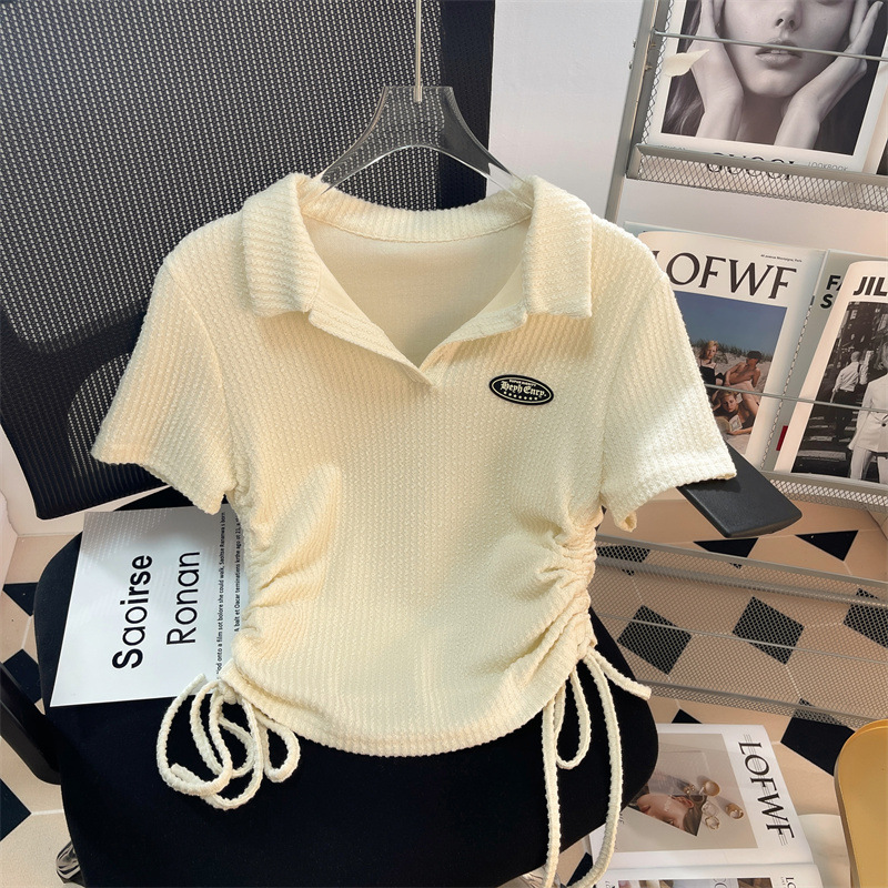 polo领短款上衣女美式辣妹抽绳短袖T恤收腰显瘦百搭设计感小众夏