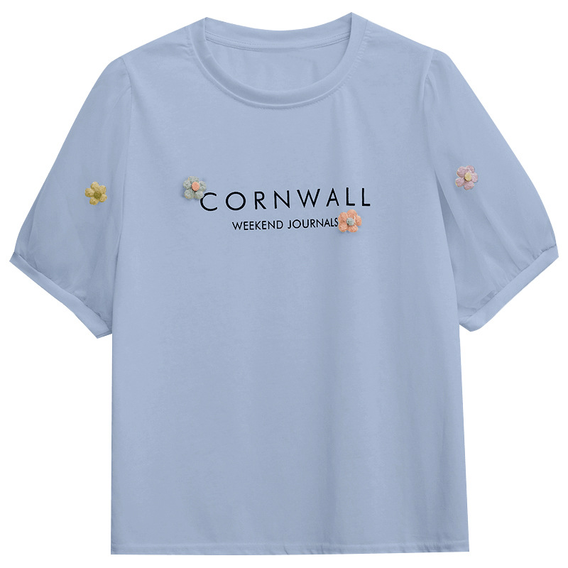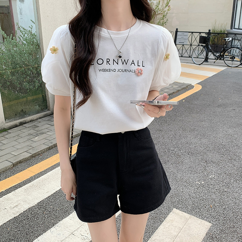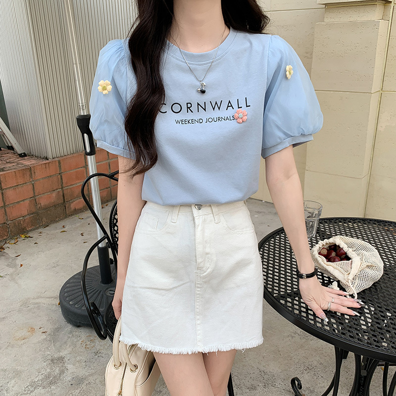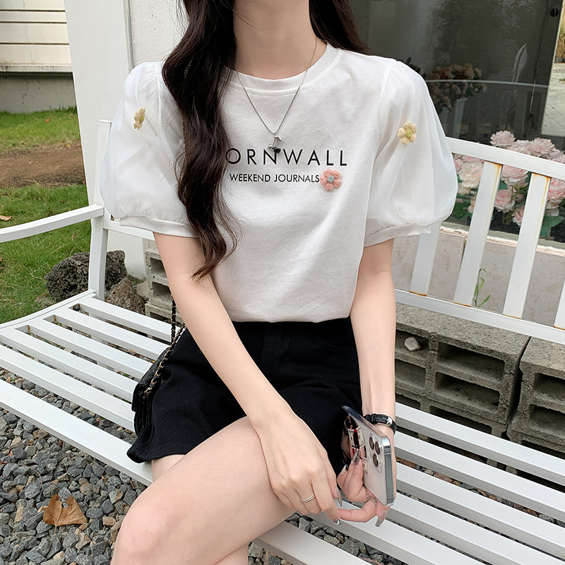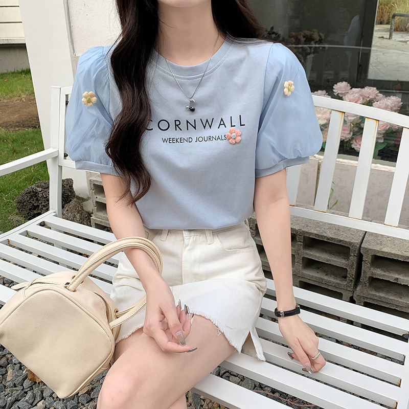 短袖T恤女设计感小众甜美减龄法式泡泡袖纯棉宽松体桖夏季上衣服