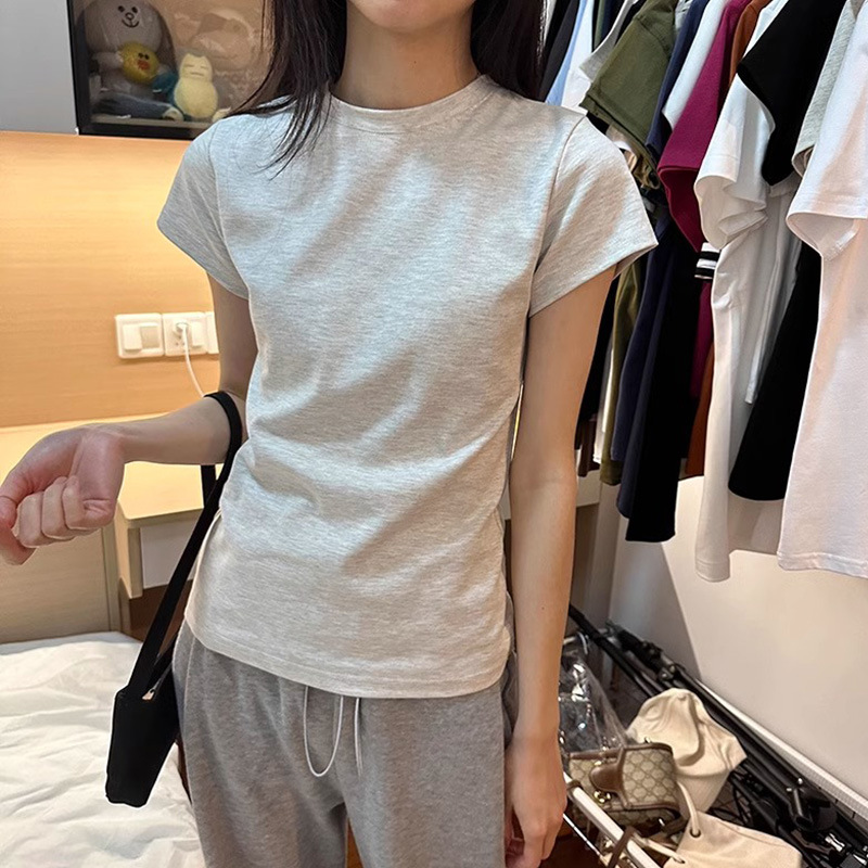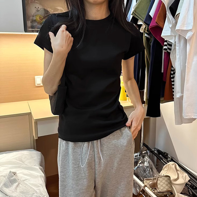 美式T恤女正肩短袖欧货年新款显瘦小衫叠穿打底纯棉上衣体桖