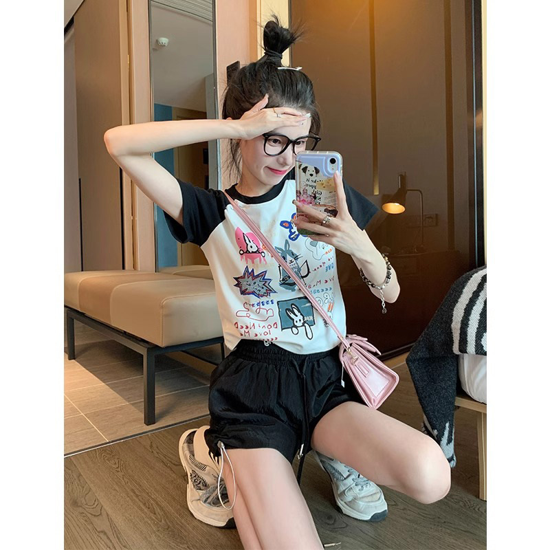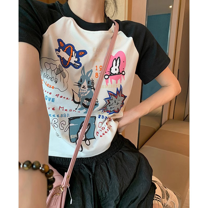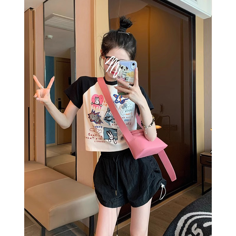 美式复古t恤女纯棉短袖夏季设计感小众辣妹正肩短款小个子上衣服