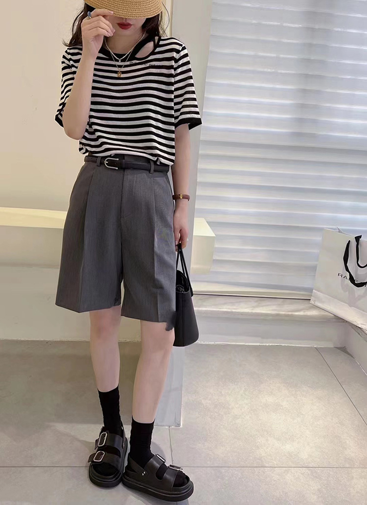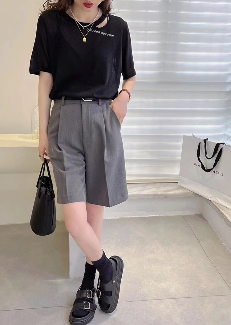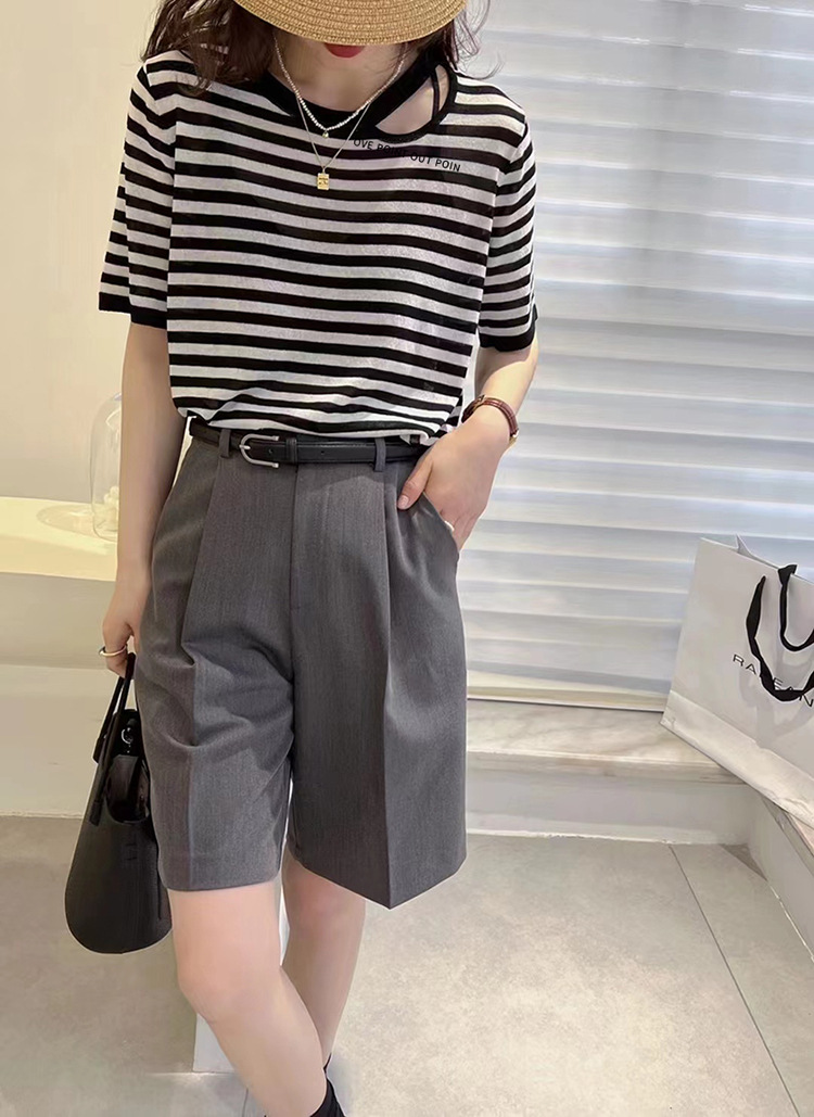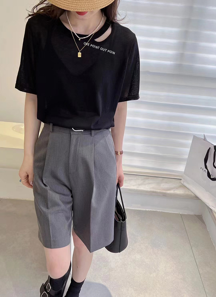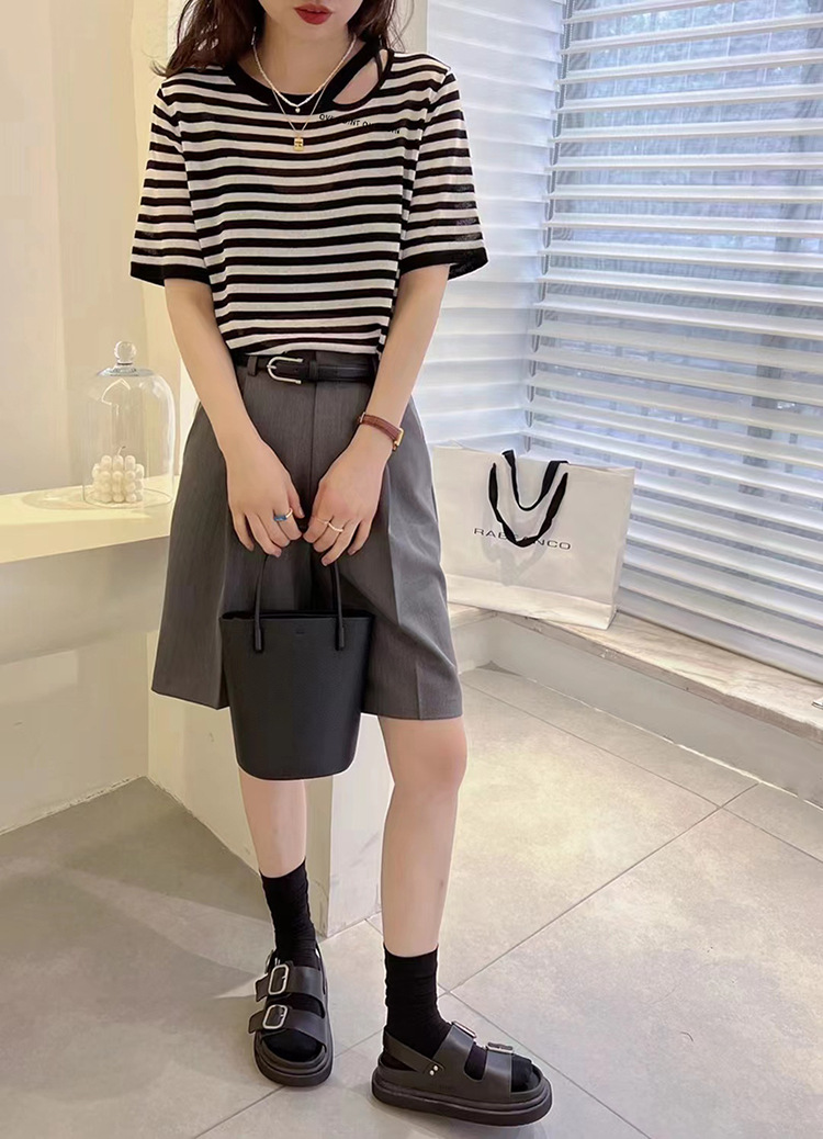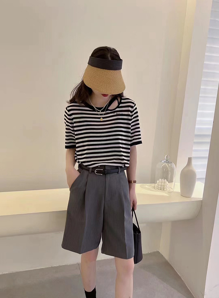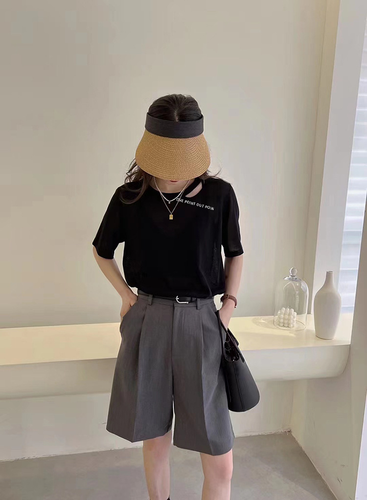 夏季薄款冰丝短袖针织衫女宽松设计感小众半袖镂空T恤新款上衣服