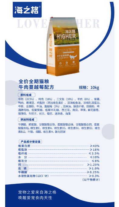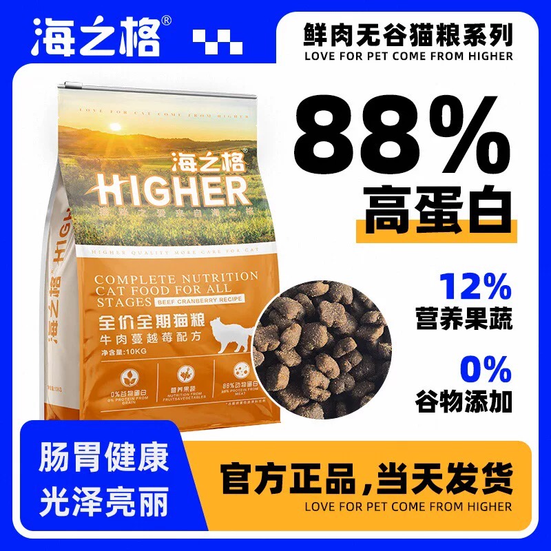 海之格牛肉蔓越莓配方10kg猫粮天然无谷干粮美毛肠胃调理