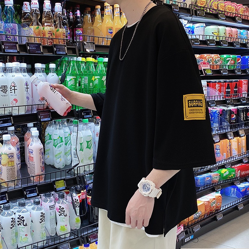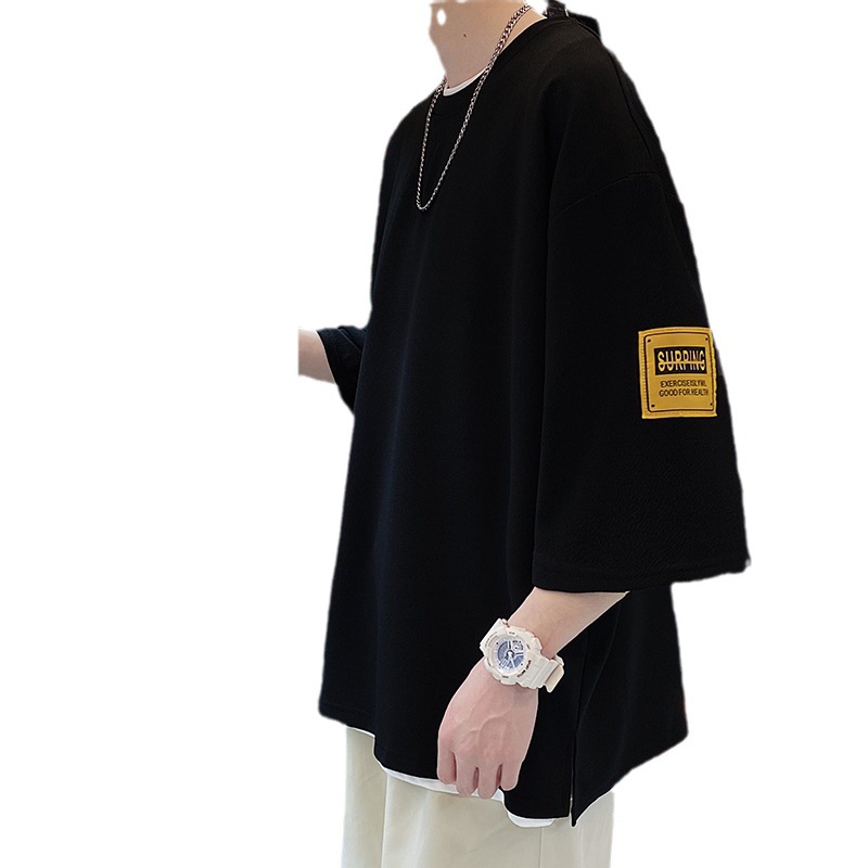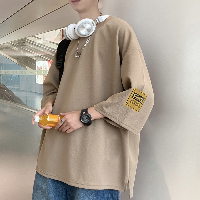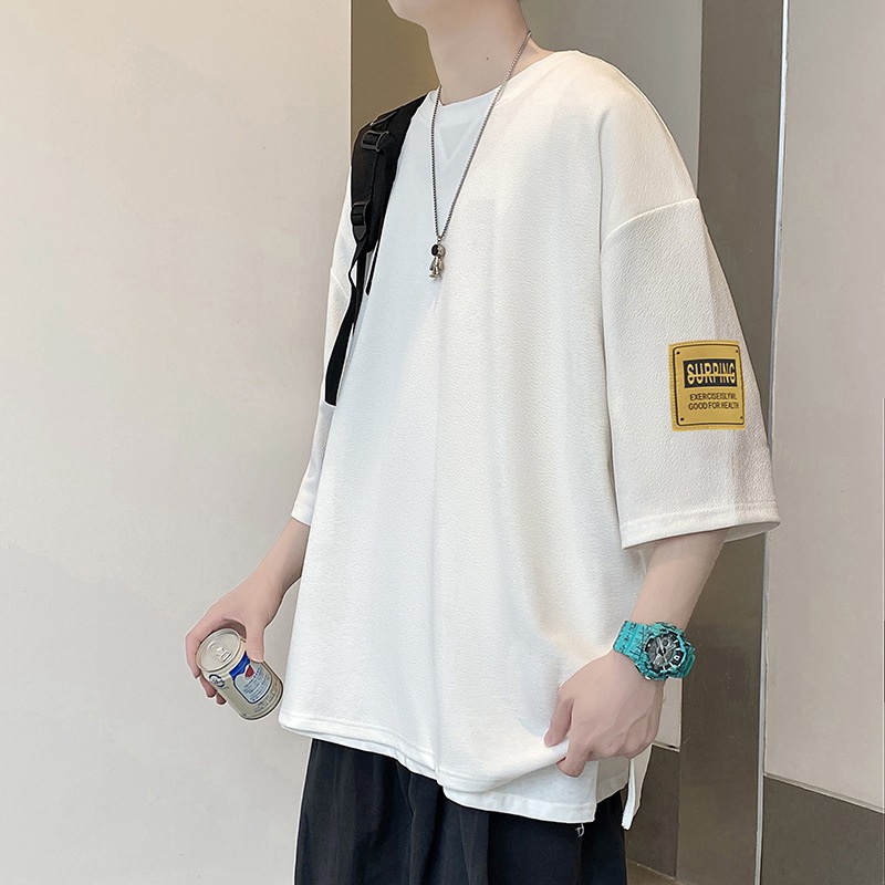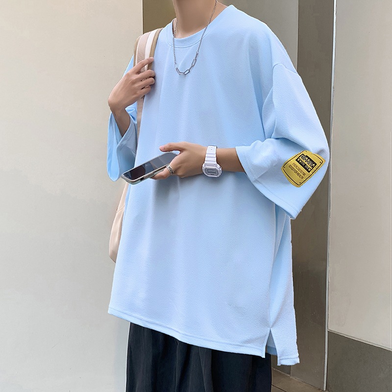 中袖七分袖男T恤夏季潮牌潮流宽松大码半袖体恤重磅短袖冰丝衣服
