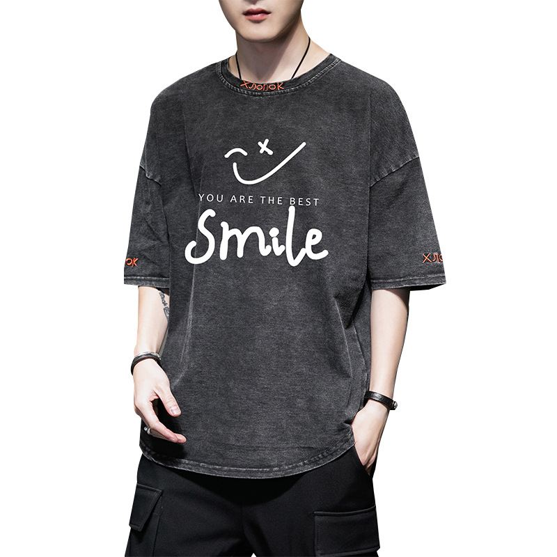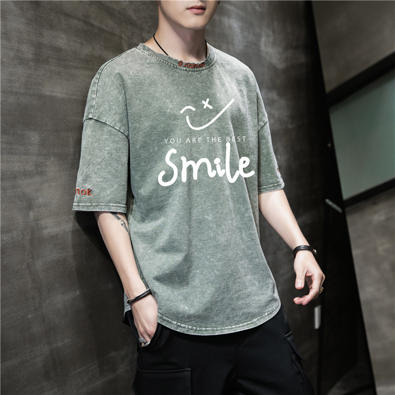 韩版宽松潮流简约百搭宽松半袖夏装休闲上衣服圆领短袖t恤男