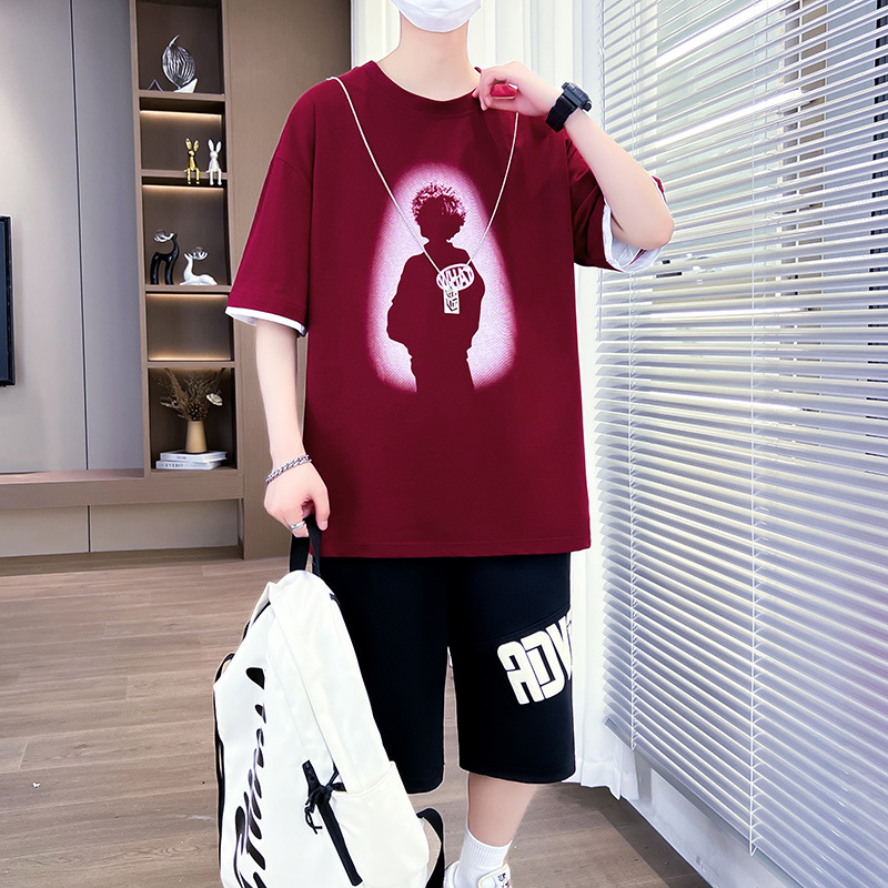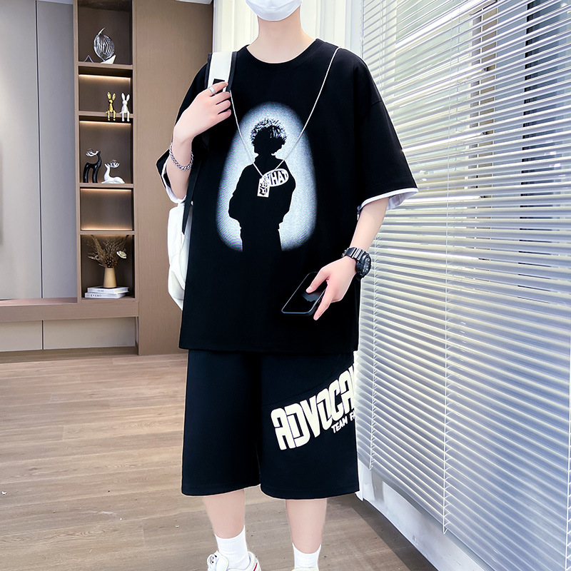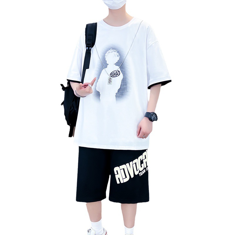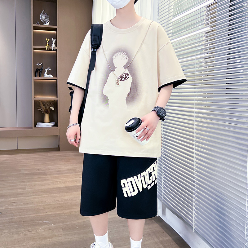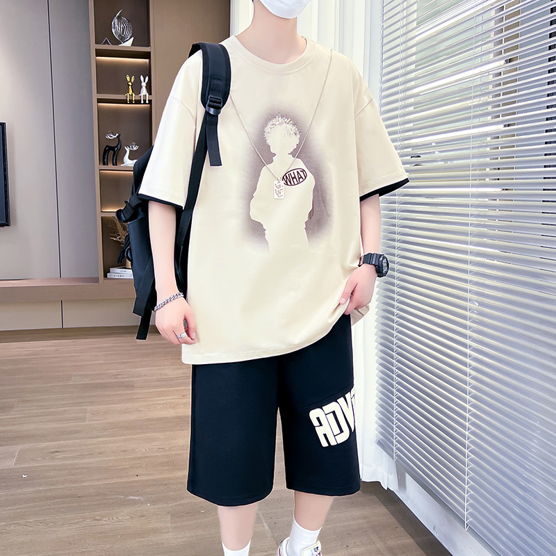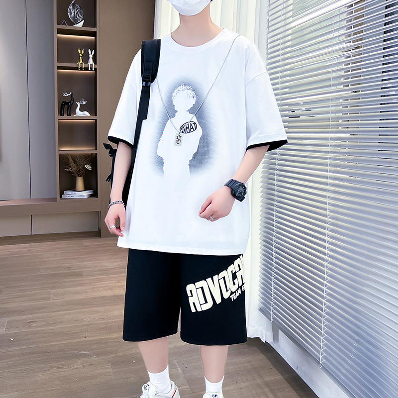 夏季新款圆领青少年短袖T恤套装时尚打底内搭简单年轻通勤