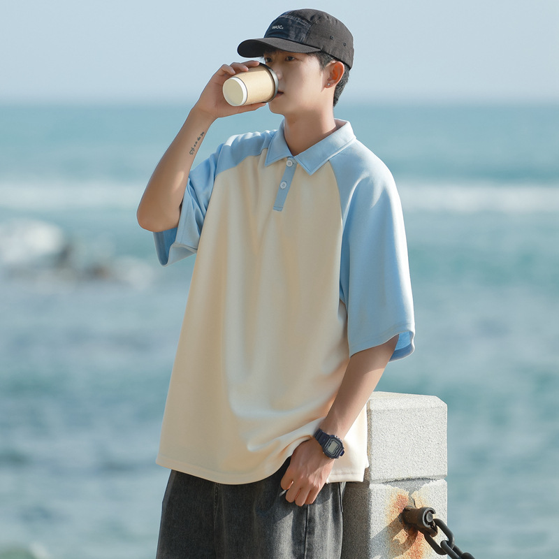 280克重磅品质港风潮流时尚POL衫多色拼接T恤百搭潮牌简约