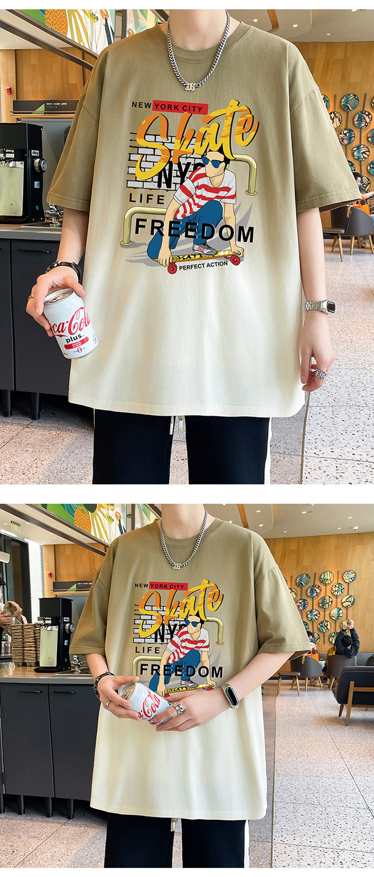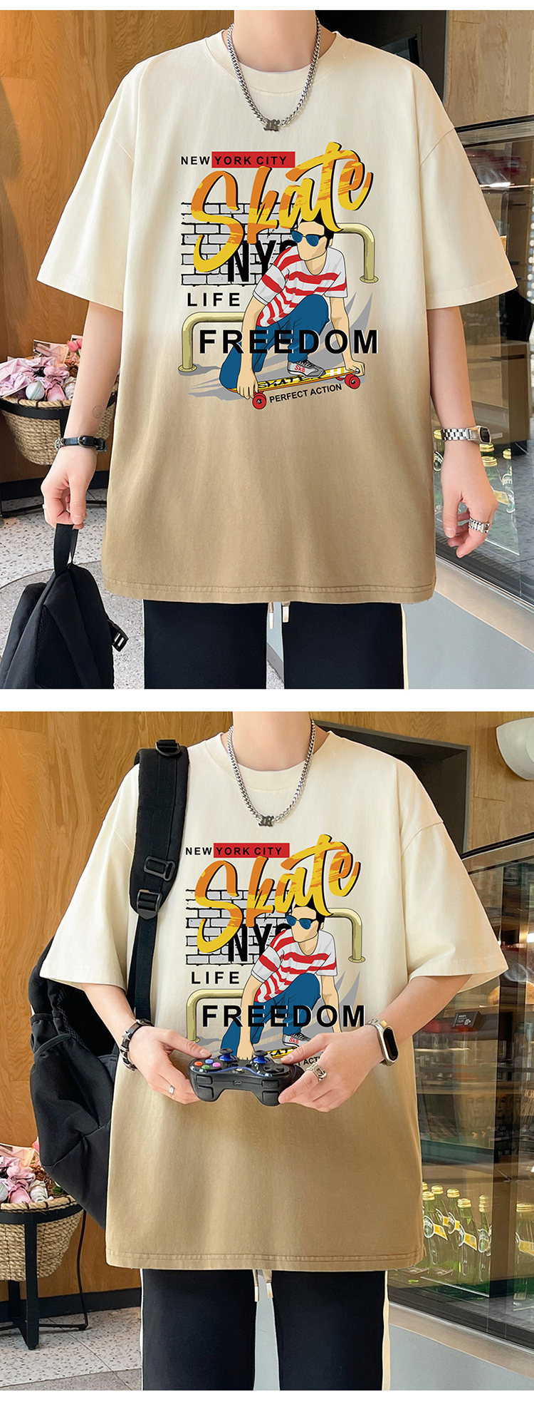 嘻哈风格夏季青少年男孩港风渐变短袖时尚T恤上衣