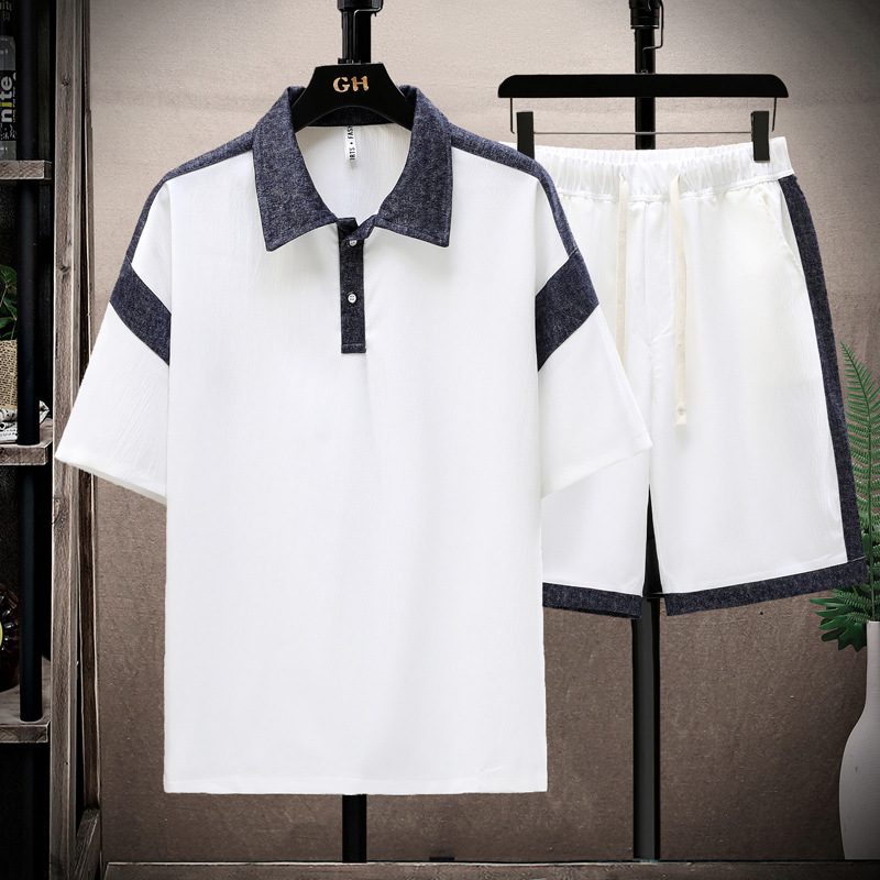 男士弹力套装时尚夏季新款学生T恤两件套港风运动高级感爆款百搭