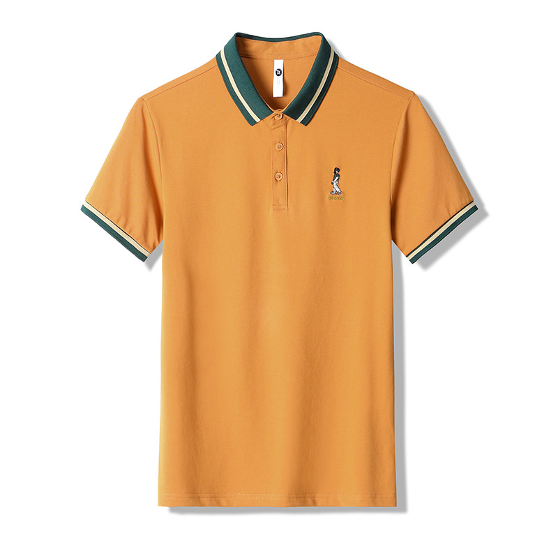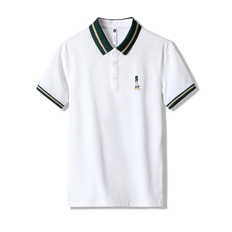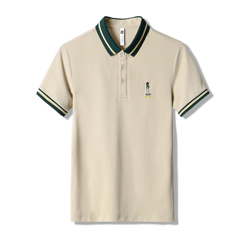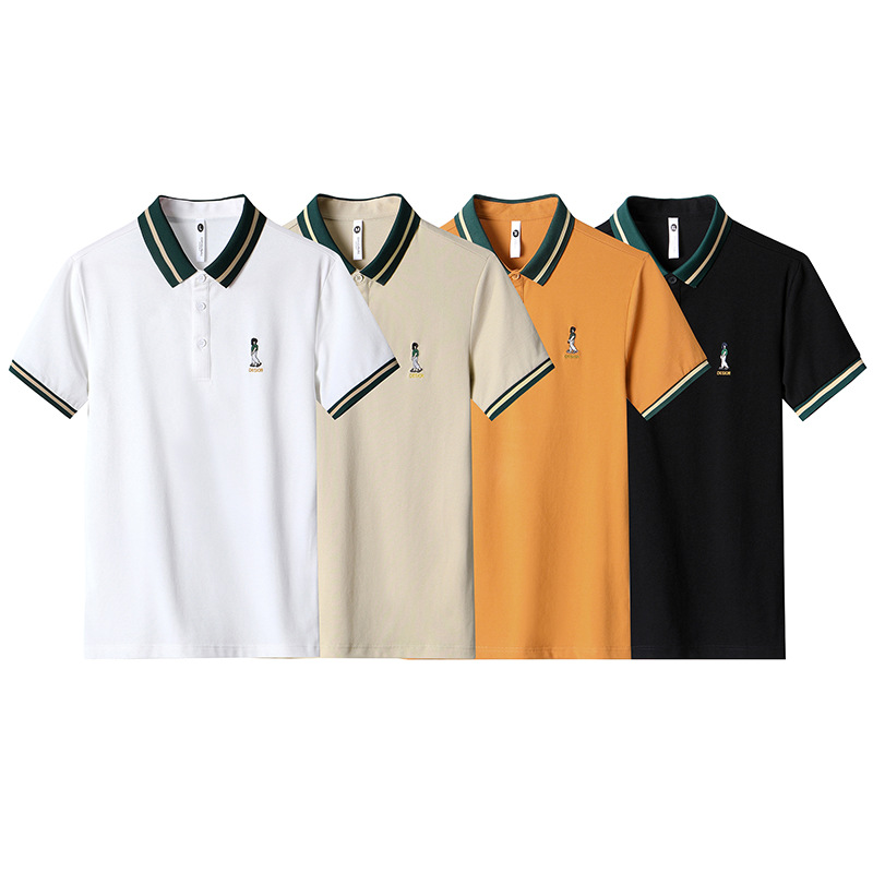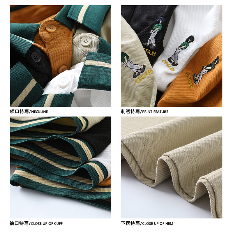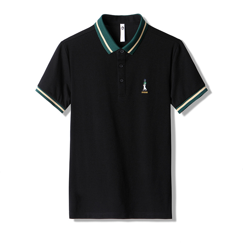 直播爆款轻奢商务珠地撞色小人刺绣大码夏季短袖T恤POLO衫
