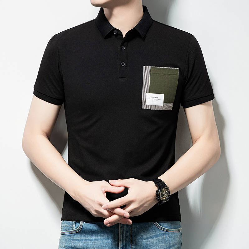 新款夏季商务高级感翻领Polo衫T恤休闲男士短袖上衣年轻小众
