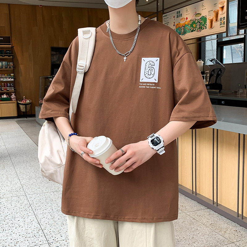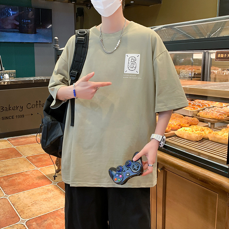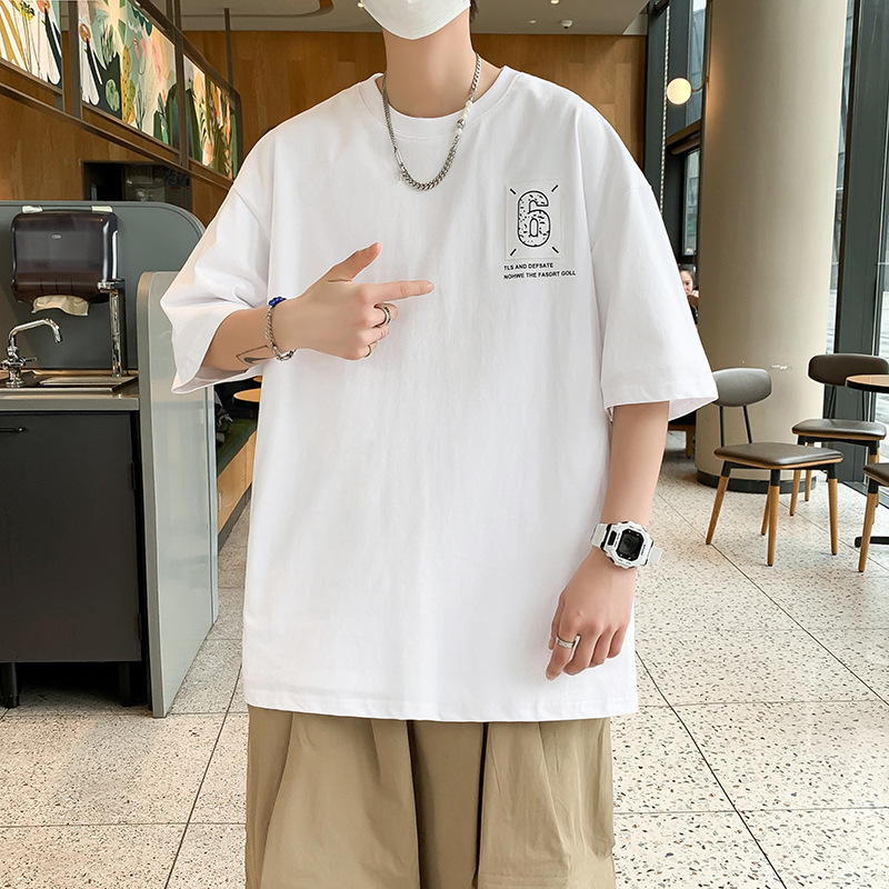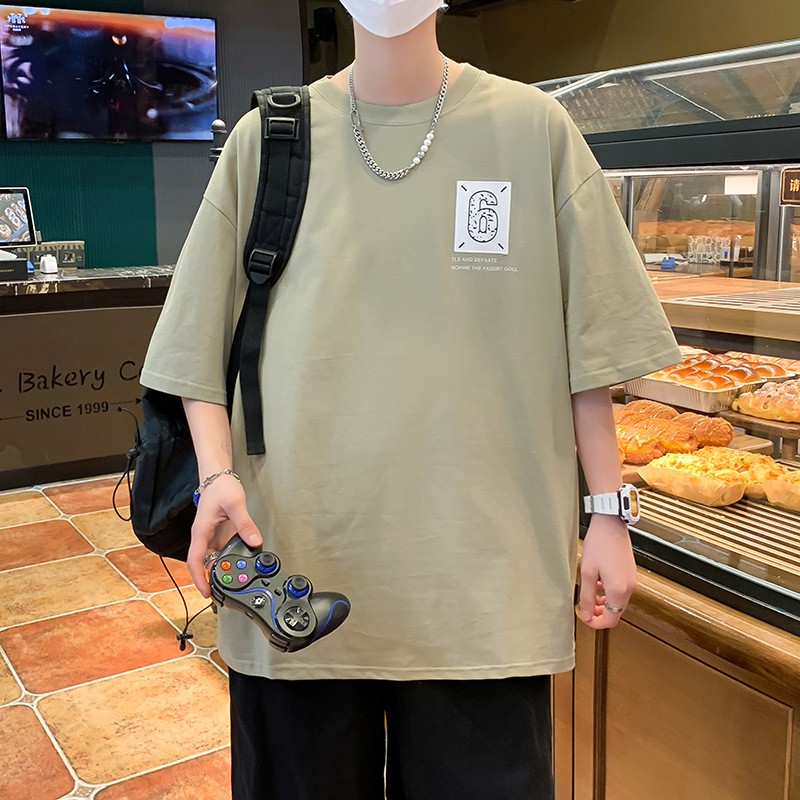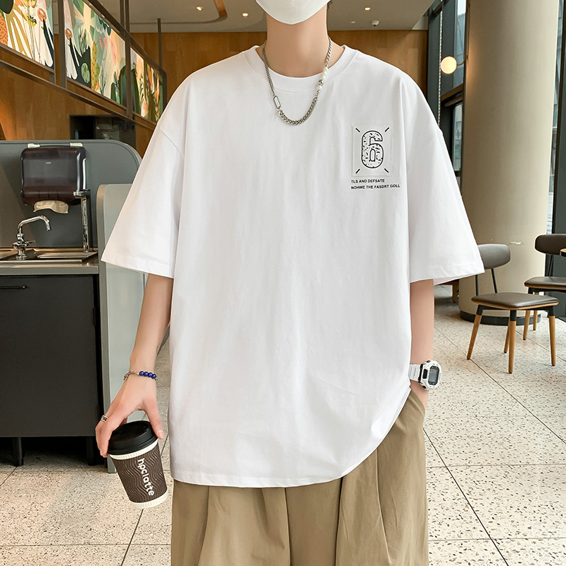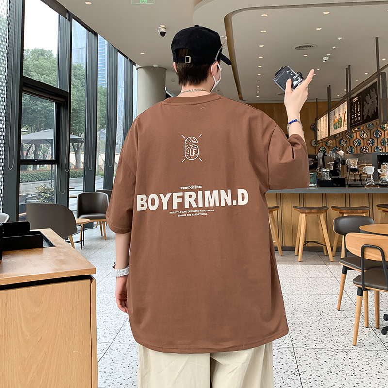 短袖t恤男2025夏季新款潮流宽松圆领体恤190g日系简约字母印花上