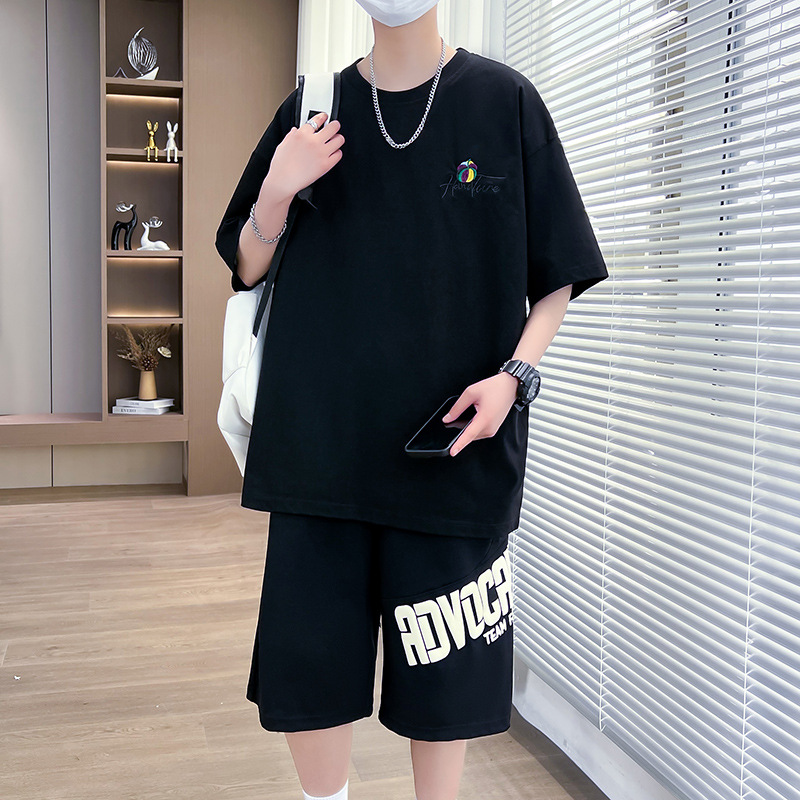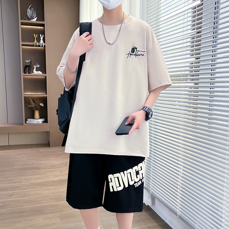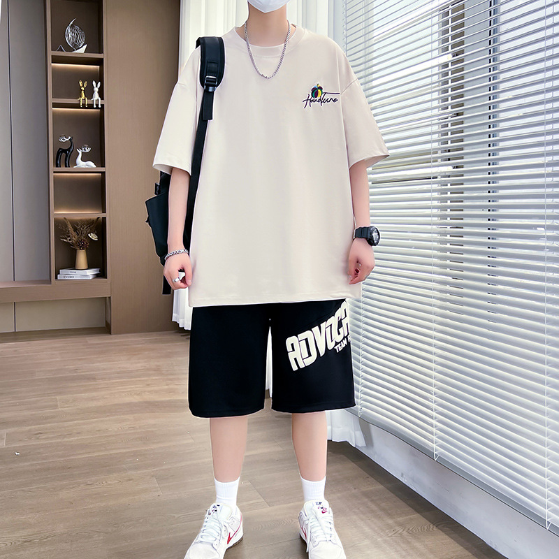 夏季新款青少年短袖圆领T恤套装潮流简约小众百搭打底内搭印花