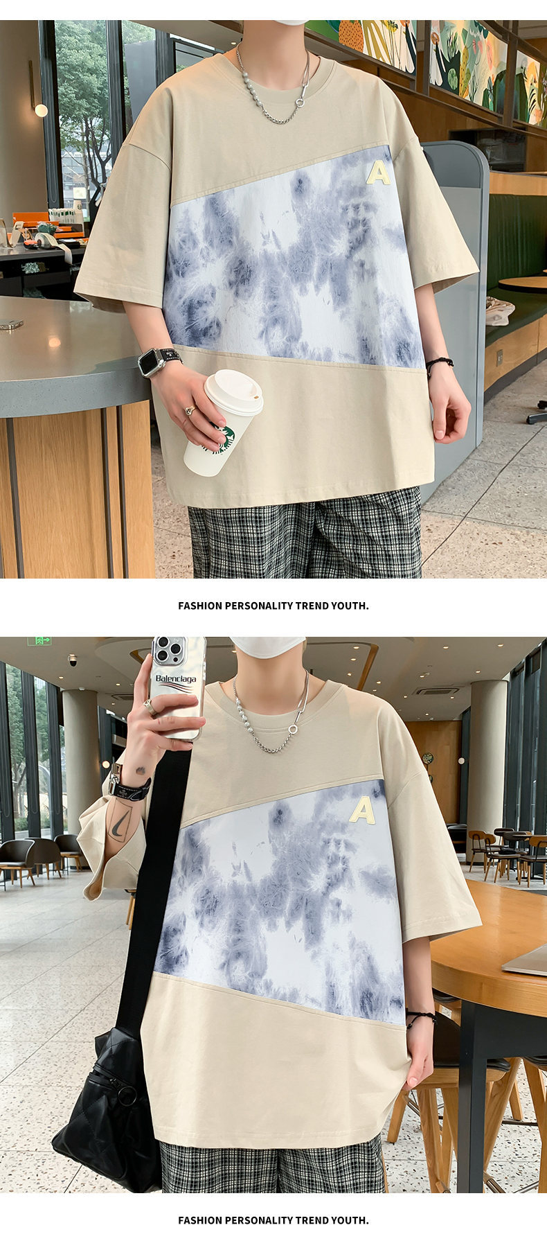 夏季新款休闲圆领喷染T恤男宽松短袖棉洋气渲染爆款