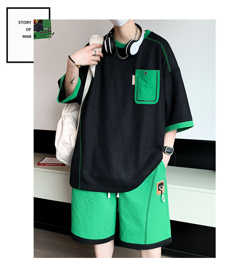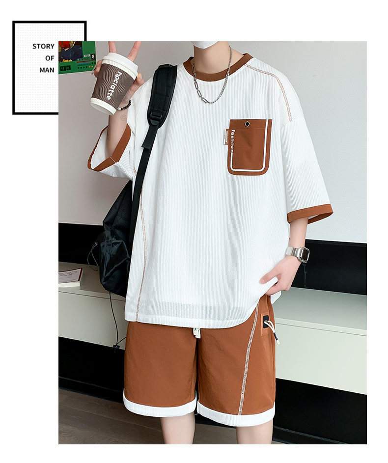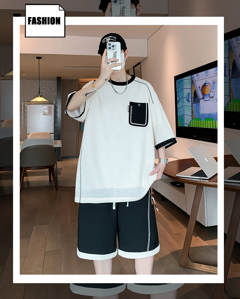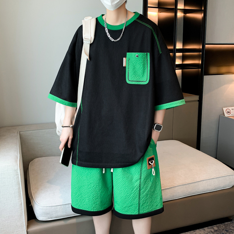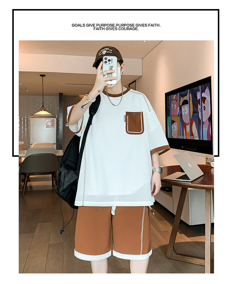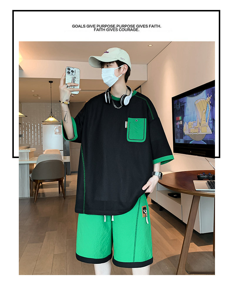 年学生运动短裤短袖两件套夏季新款青少年T恤套装男宽松
