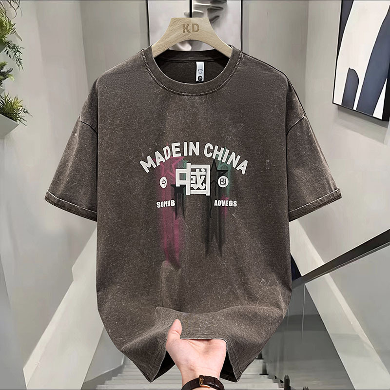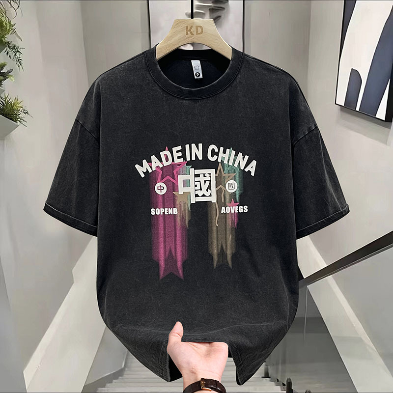 夏季男士圆领棉T恤青少年日常休闲痞帅体恤衫年轻潮牌