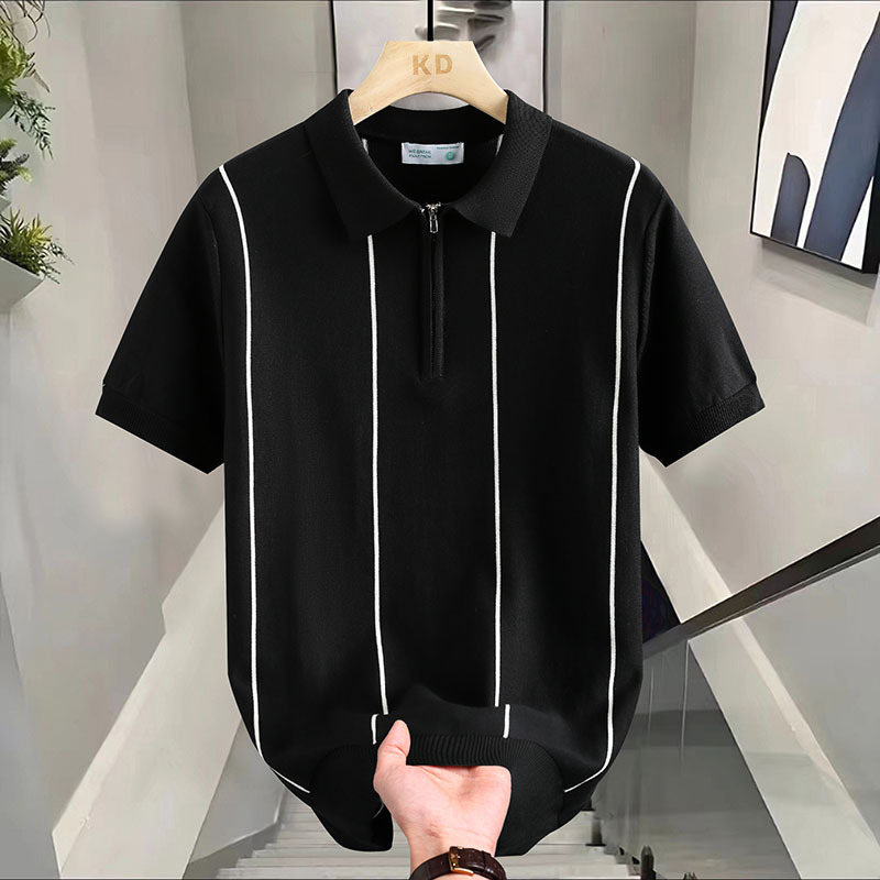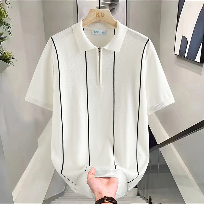 春秋商务夏季男士短袖冰丝毛衣青少年休闲polo衫T恤