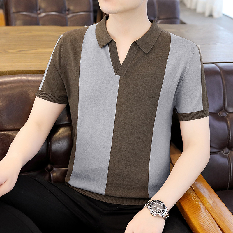 夏季新品高品质针织polo衫轻奢男士翻领套头T恤冰麻