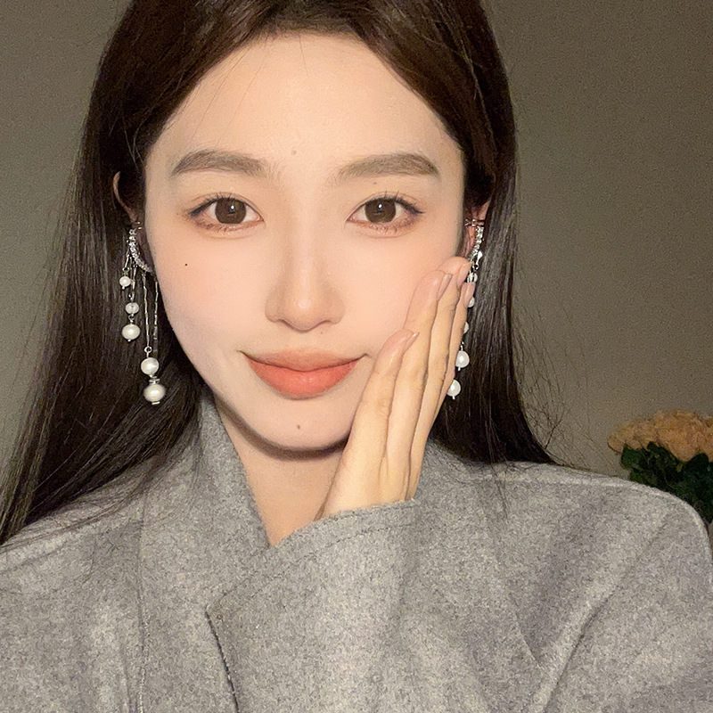 超仙珍珠流苏锆石耳环女气质轻奢高级感耳骨夹耳钉一体式潮