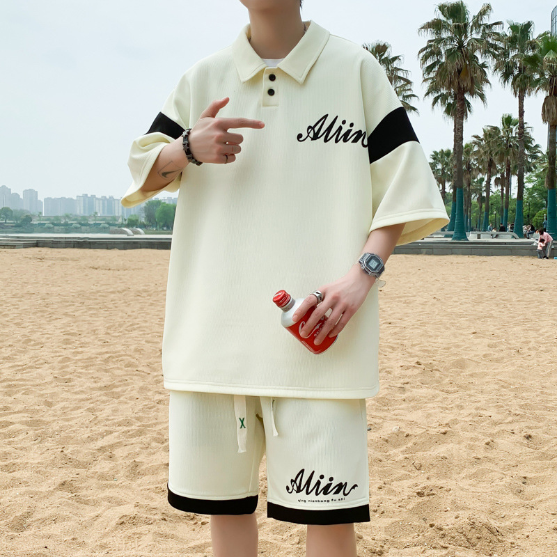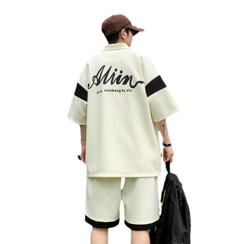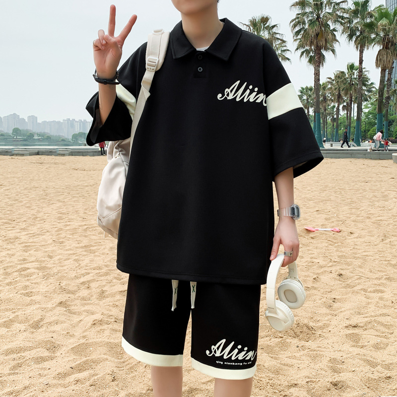 年夏季新款青少年短袖T恤套装宽松运动男宽松短裤两件套