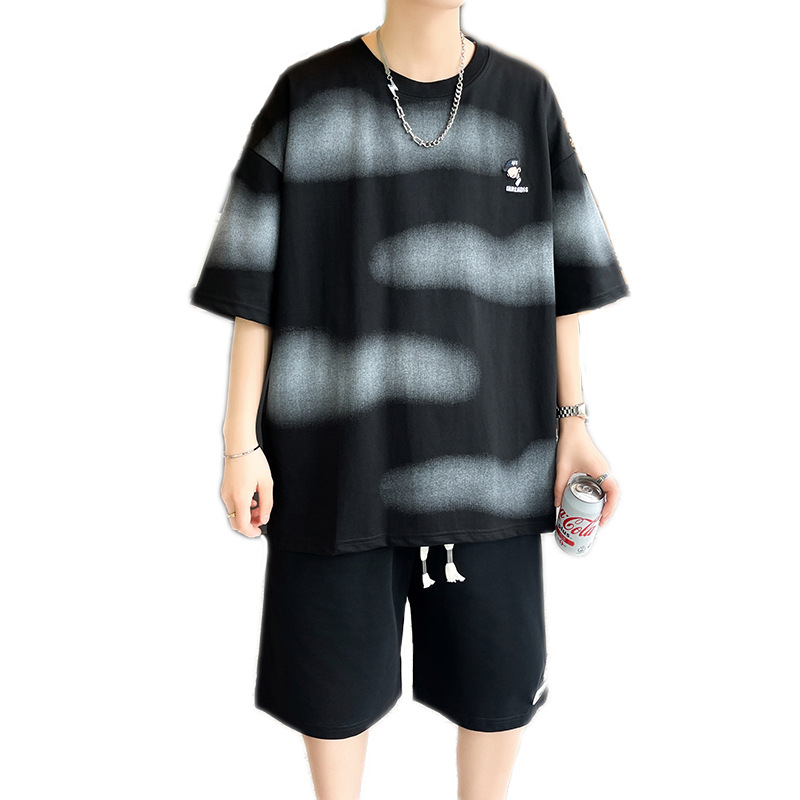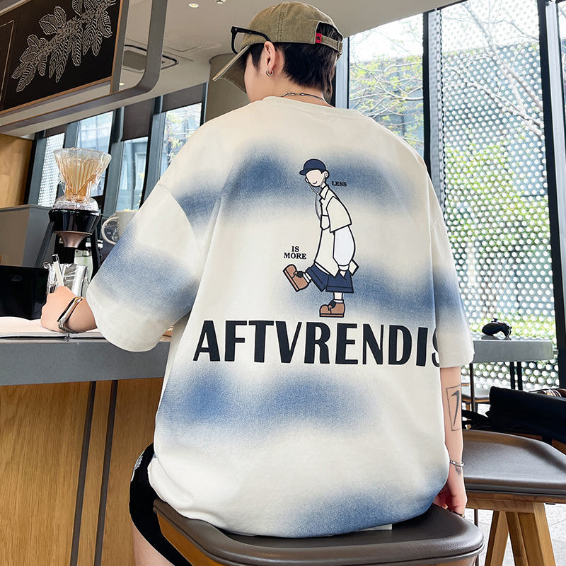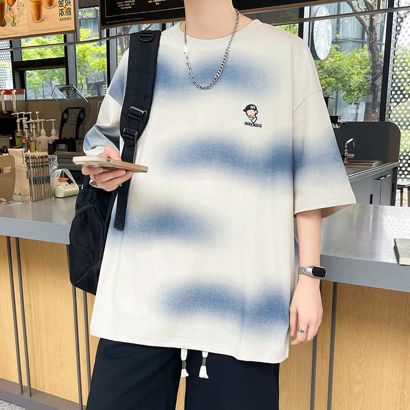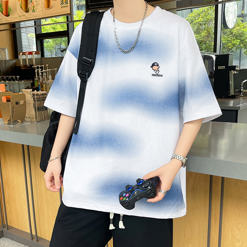 夏季新款短袖T恤男青少年渐变色高冷学生装五分袖上衣