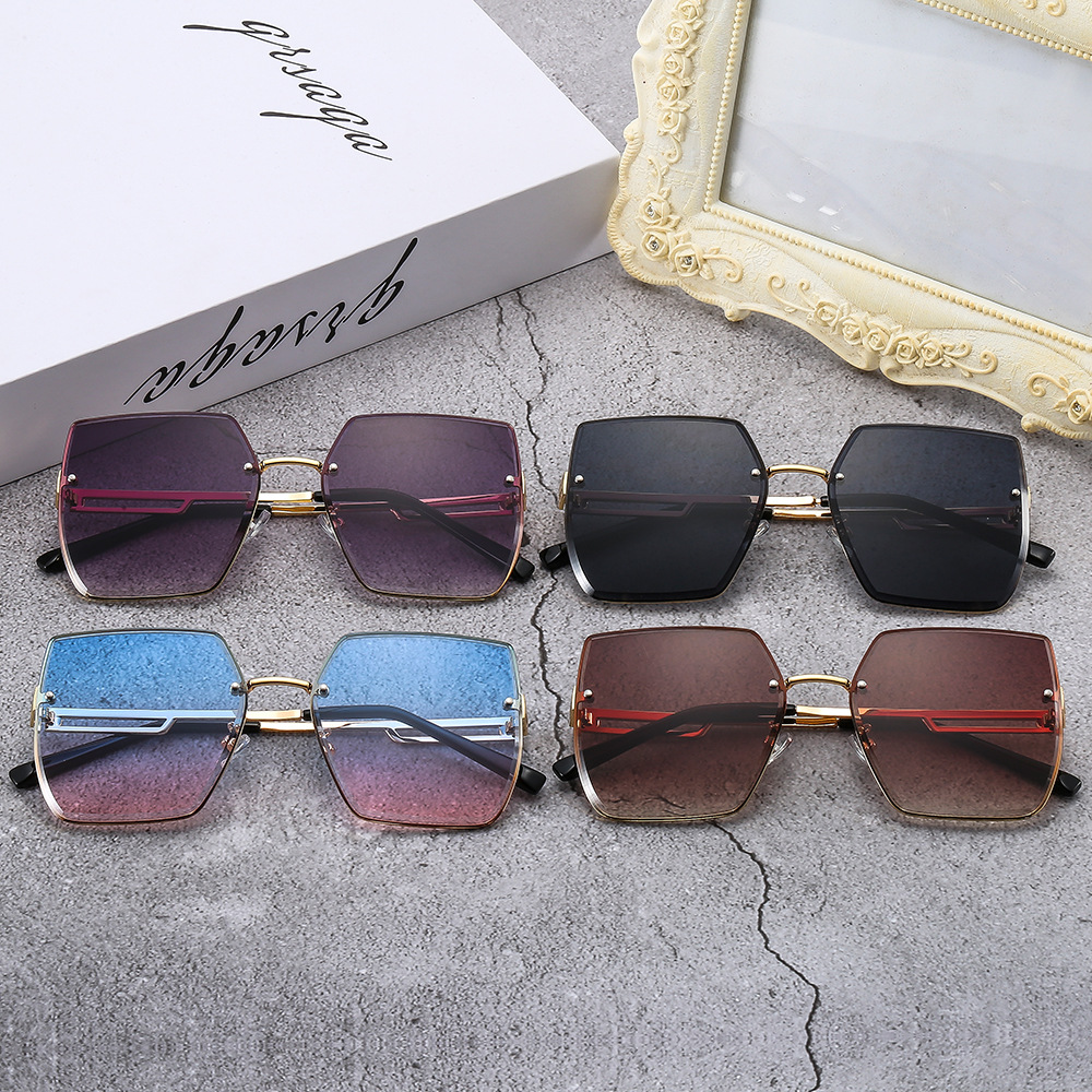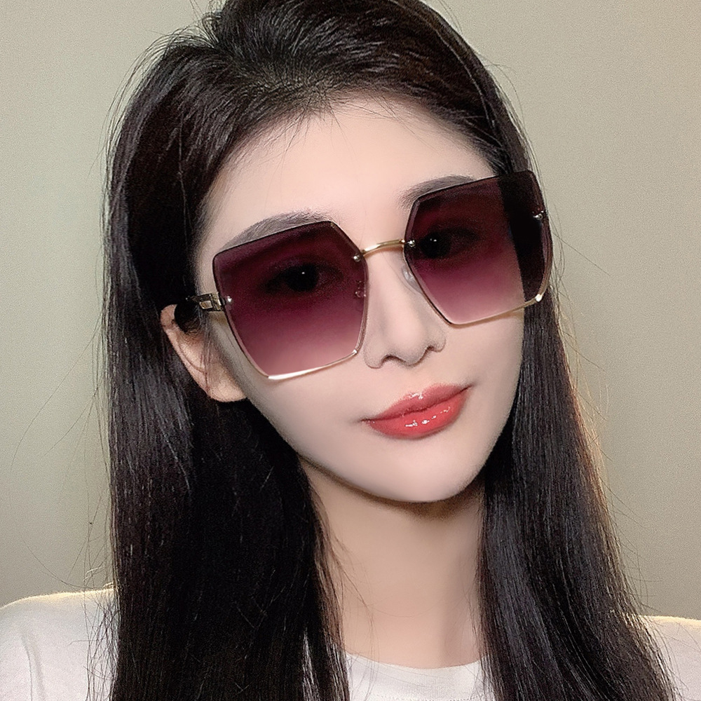 无框切边网红太阳镜女 时尚韩版太阳眼镜渐变色防紫外线墨镜