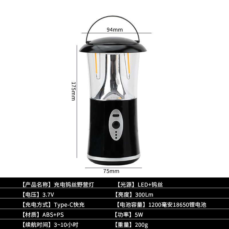 新款钨丝露营灯【黑色】