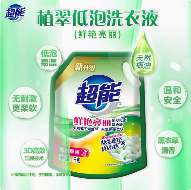 超能洗衣液香味持久留香家用1kg袋装补充装实惠正品低泡