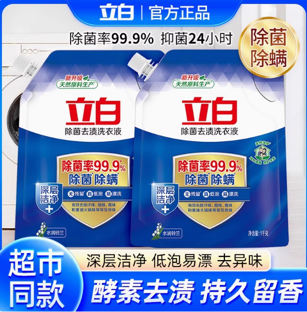 立白除菌去渍洗衣液1kg水润铃兰除异味深层洁净家庭装机洗实惠装