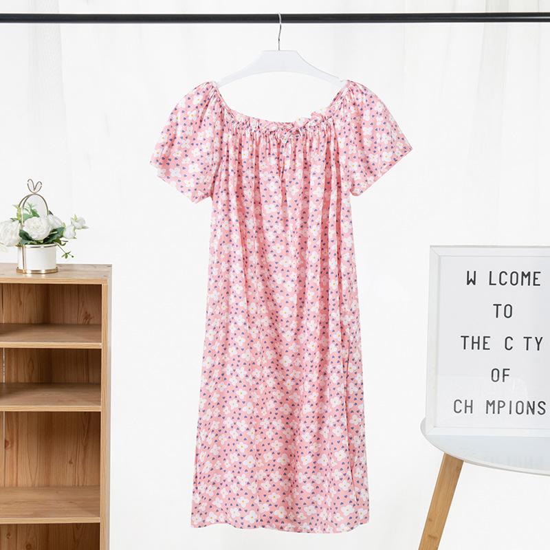 碎花棉绸睡裙女夏季薄款睡衣裙短袖印花韩版圆领宽松绵绸睡裙
