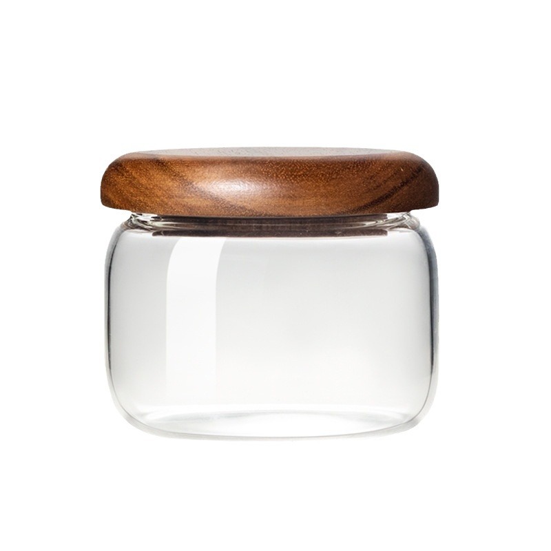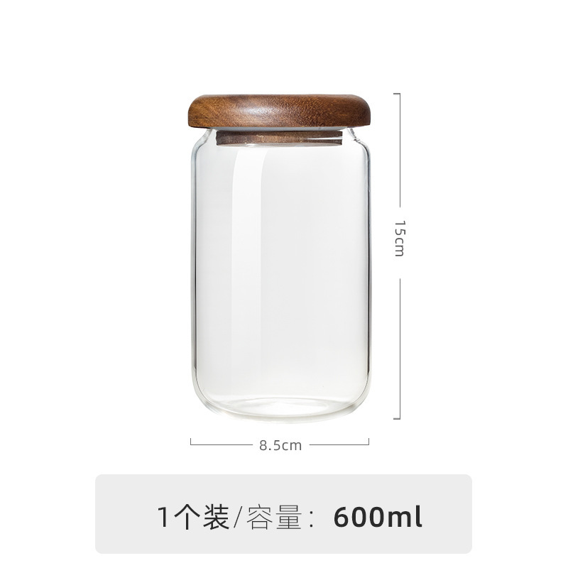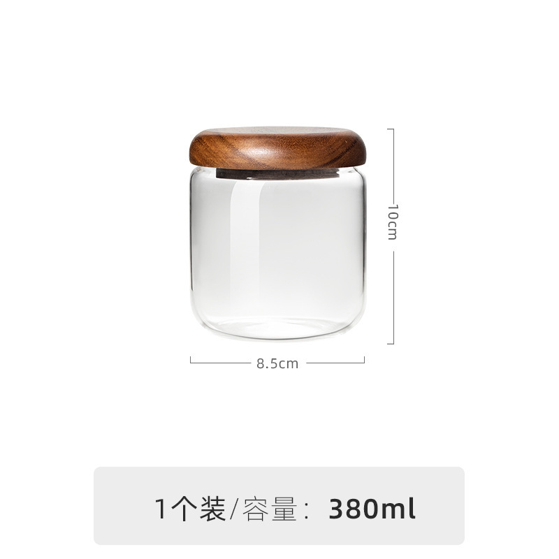 干果零食杂粮玻璃收纳密封罐小号透明储物罐相思木日式圆形茶叶罐