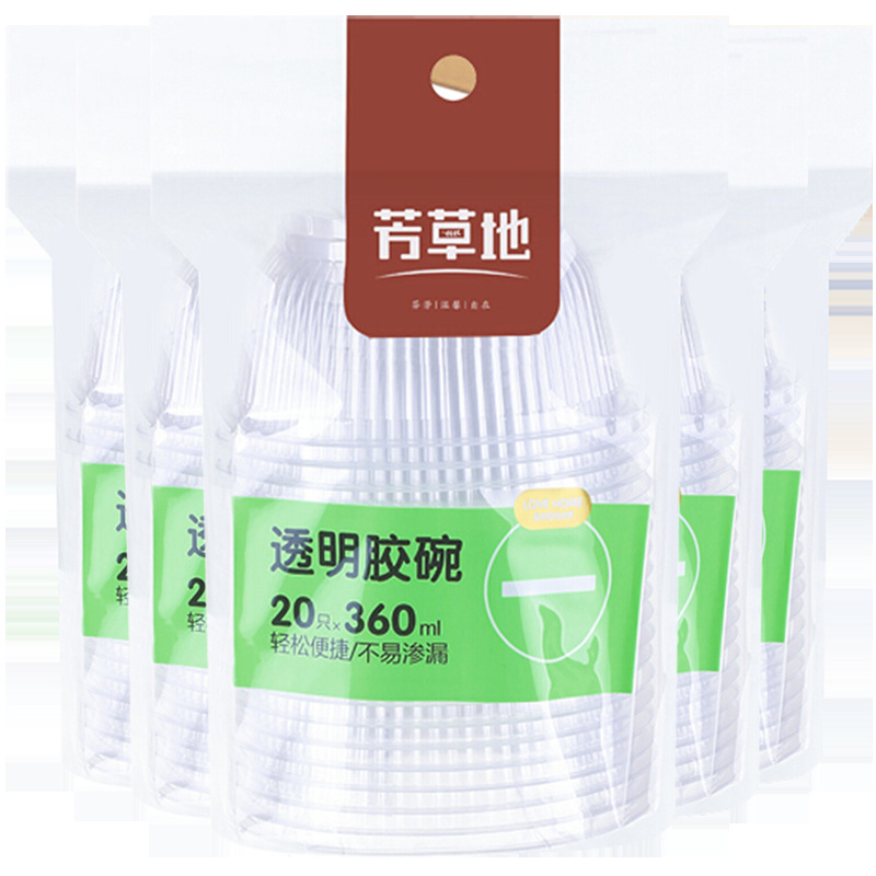 芳草地一次性汤碗不带盖塑料圆形餐碗20只装家用宴席饭碗百货