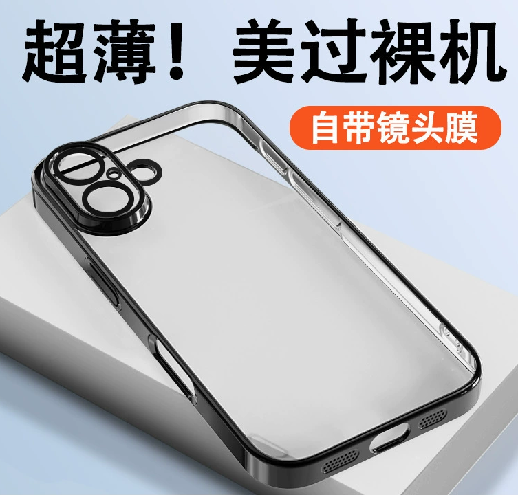 适用iphone16promax手机壳电镀自带镜头膜15透明苹果14防摔保护套