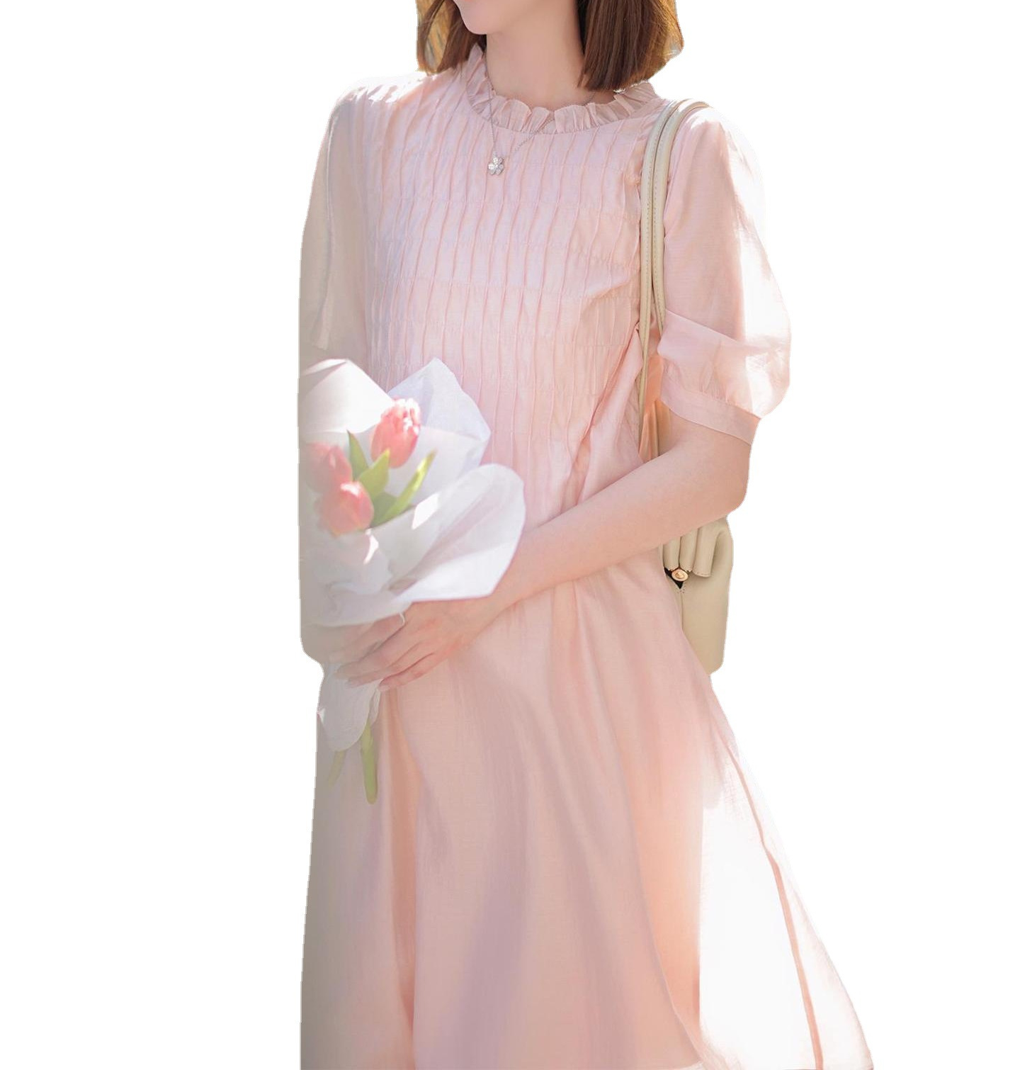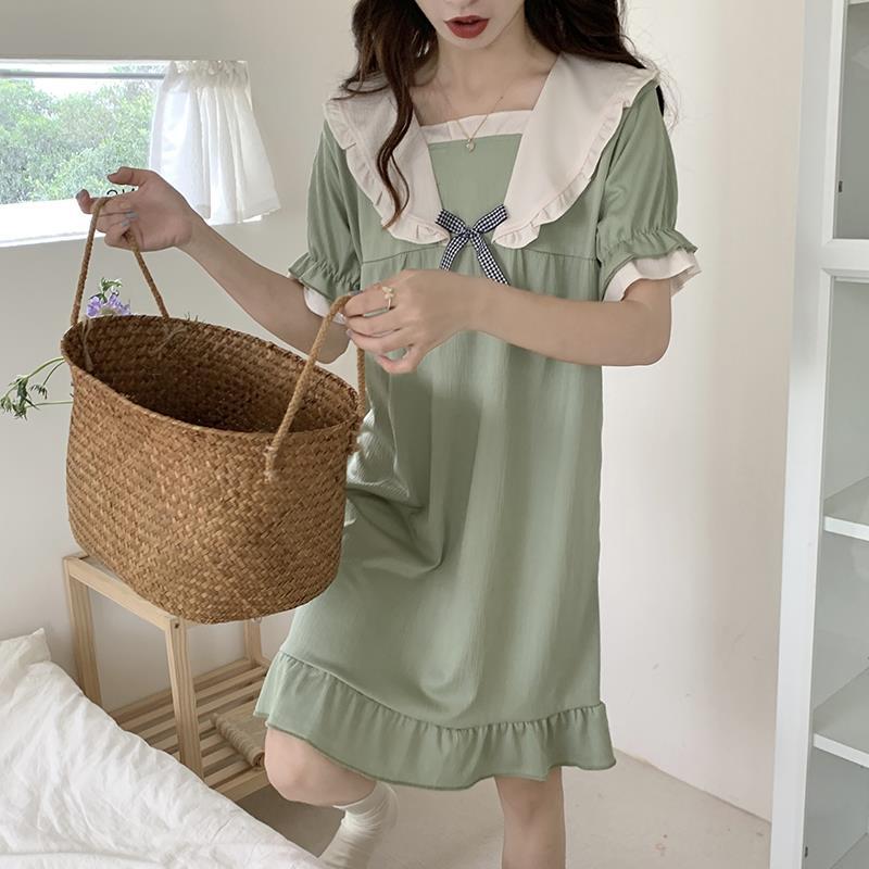 简约提花睡裙女夏季棉质短袖甜美清新公主风家居服夏天花边连衣裙